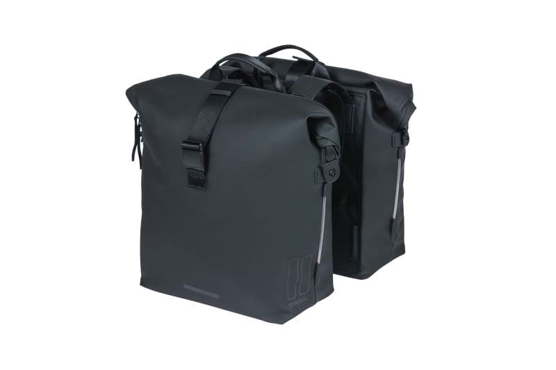 - Wodoodporna podwójna sakwa ze zwijanym zapięciem.