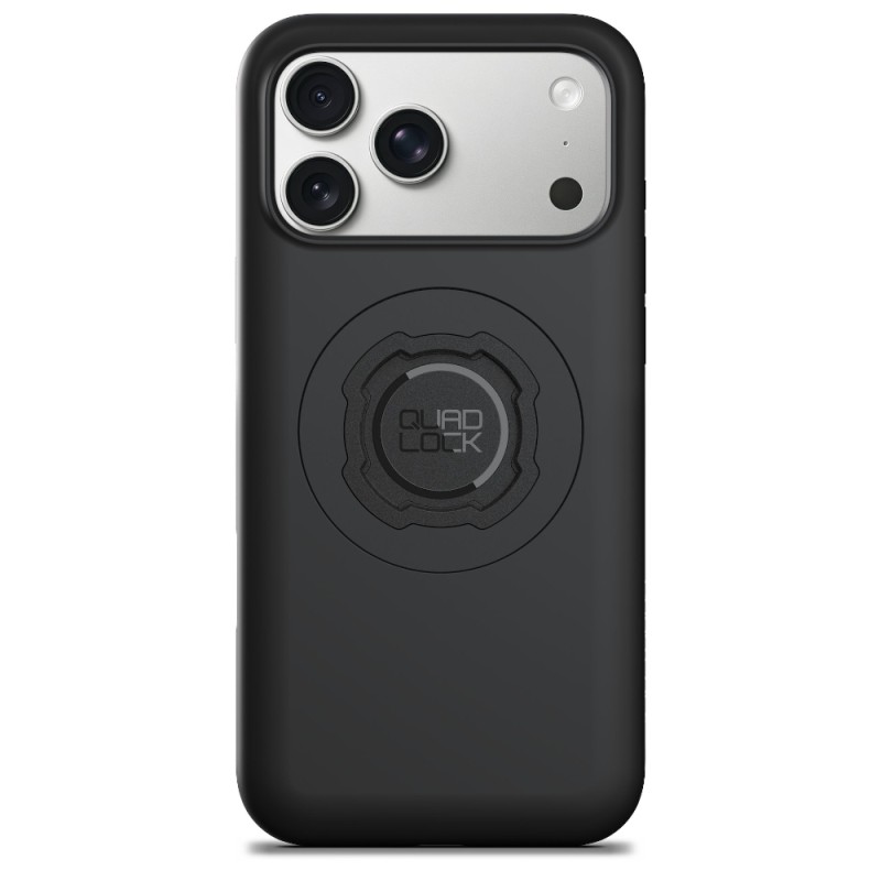 Dopasowana obudowa na smartfona iPhone 17 Pro Max wyposażona w bezpieczny mechanizm mocujący Quad Lock Mag kompatybilny ze wszystkimi mocowaniami typu twist, odporną na uderzenia, od krawędzi do krawędzi, osłonę oraz ochronną wyściółkę.