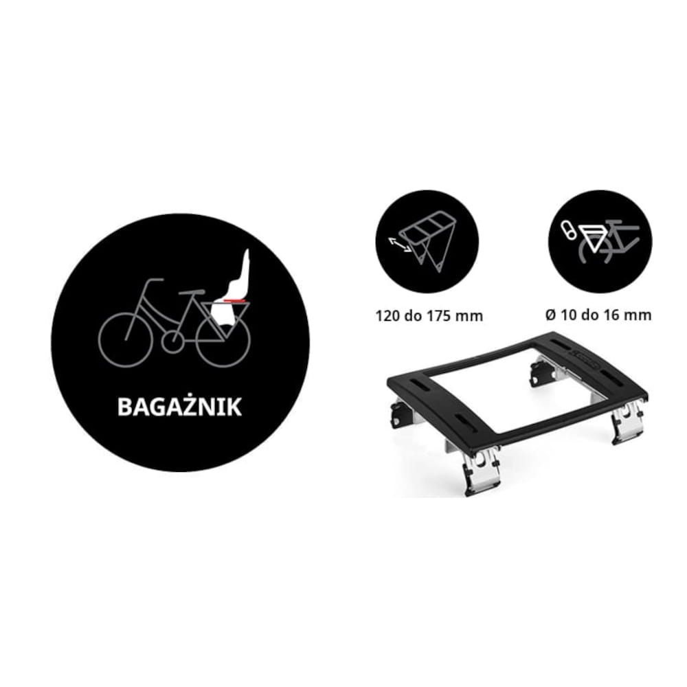 - W zestawie z fotelikiem łatwy i szybki system mocowania na bagażniku