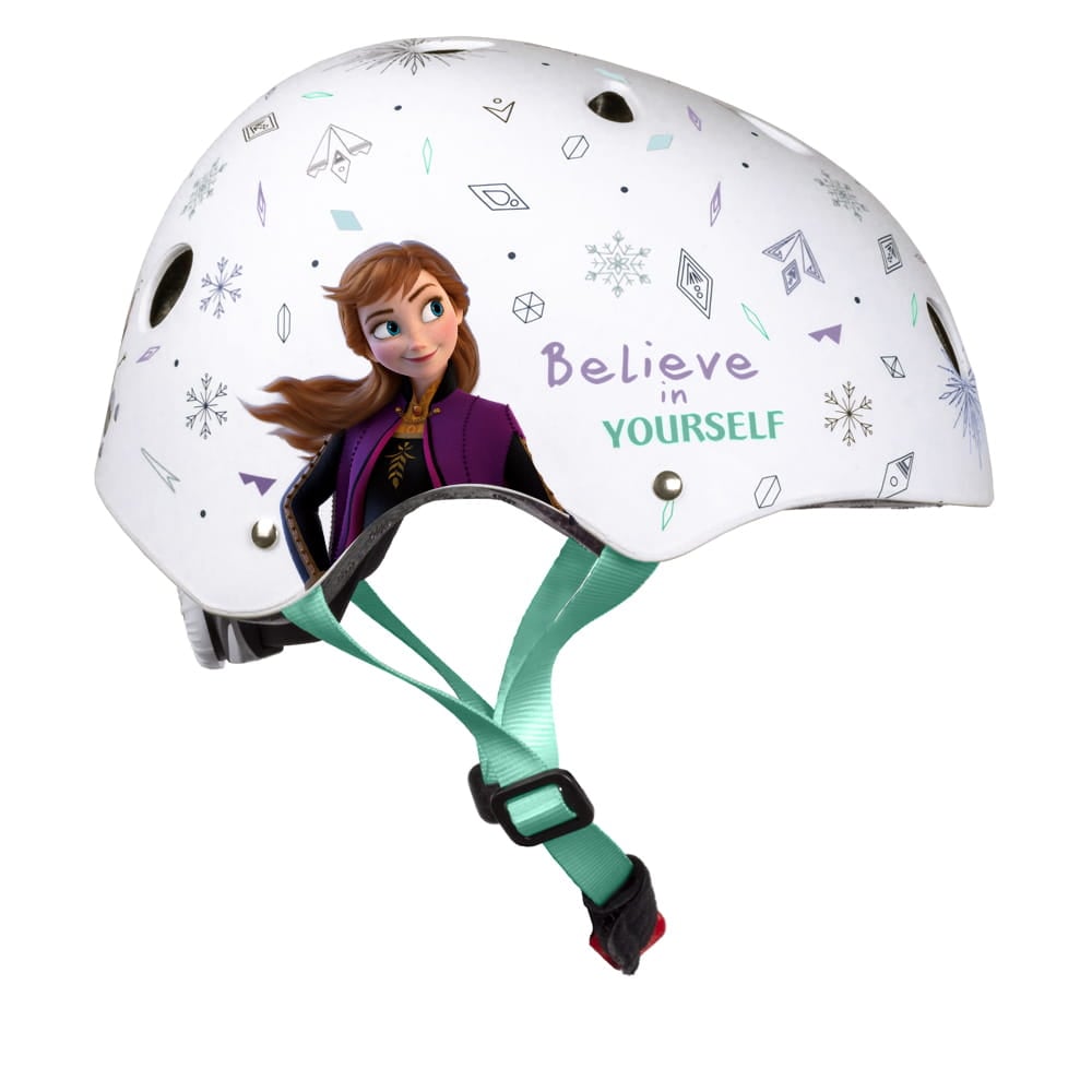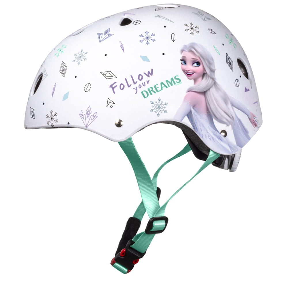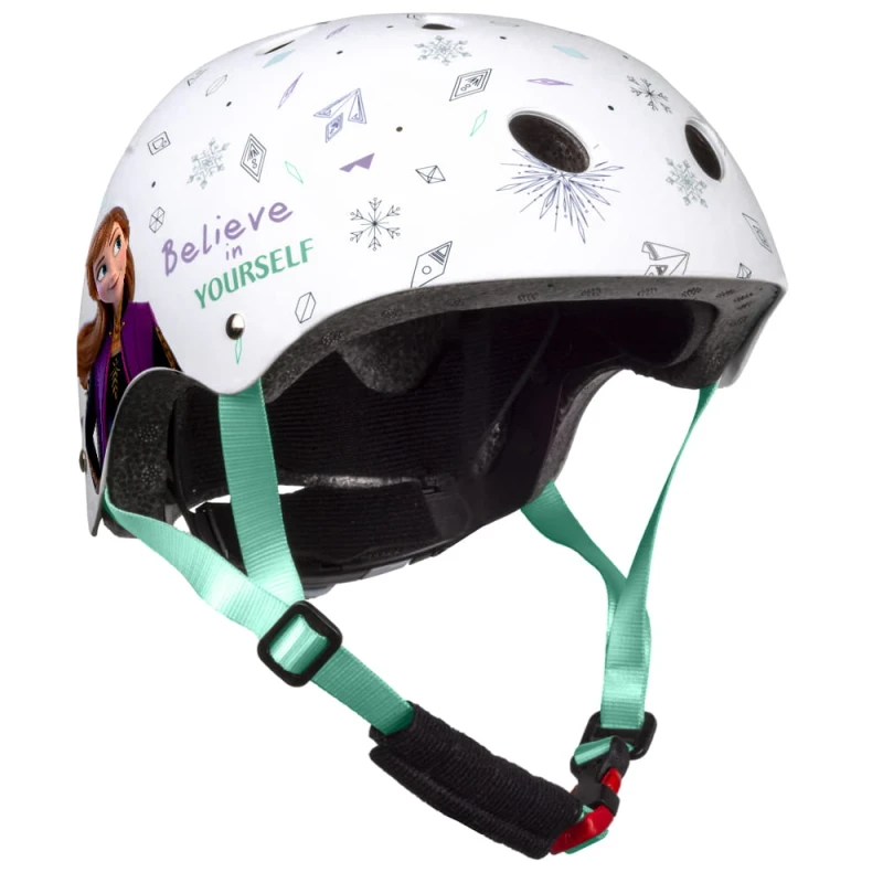 Na zewnątrz wykonany jest z trwałej i wytrzymałej powłoki ABS, wewnątrz znajduje się absorbująca uderzenia pianka EPS. Kask ozdobiono kolorowymi wzorami przedstawiającymi bohaterów z bajek Disney.