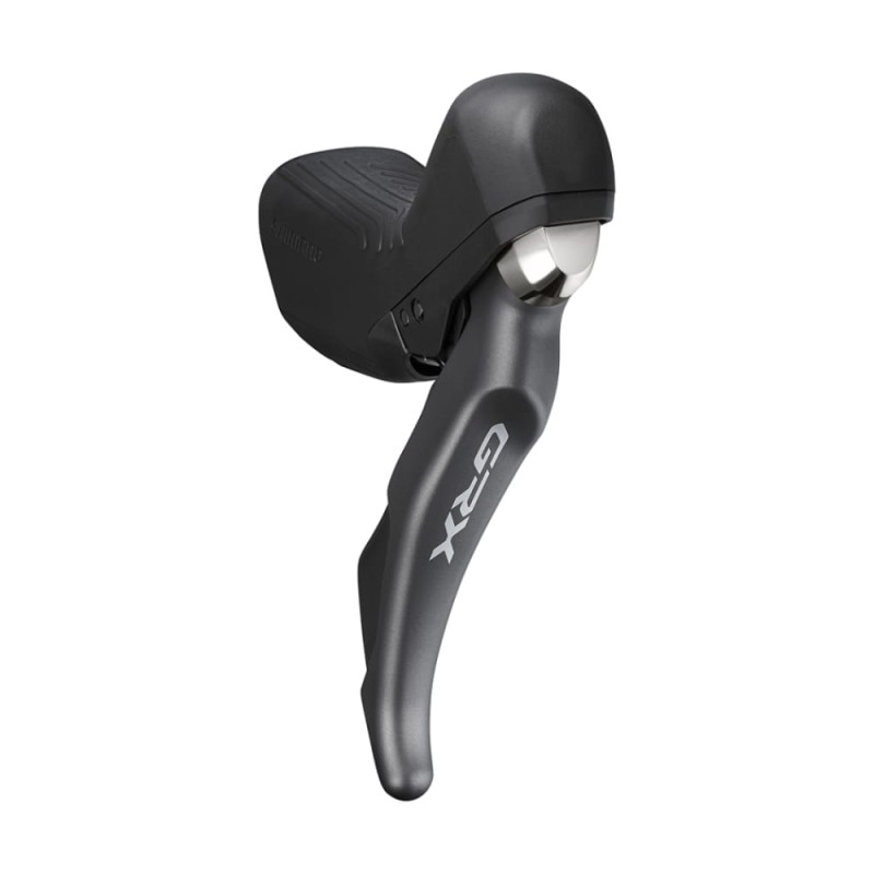 Dźwignia Dual Control Lever Shimano GRX zapewnia lekką i szybką zmianę przełożeń podczas jazdy w zróżnicowanym terenie. Ergonomiczny kształt dźwigni przerzutki poprawia wygodę użytkowania, a teksturowana, antypoślizgowa powierzchnia dźwigni hamulca zwiększa kontrolę na nierównych nawierzchniach.
