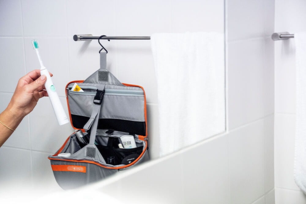 Lekka, stabilna kosmetyczka z haczykiem do powieszenia oraz lusterkiem. Duży główny przedział do przechowywania kosmetyków, kilka kieszonek wewnątrz na drobiazgi. Rączka do naszenia. Bardzo wygodna do zabrania w podróż. Idealnie pasuje na dno sakwy Back-Roller.