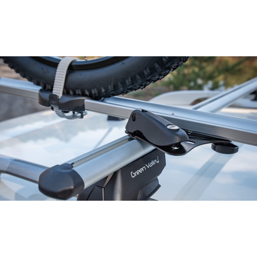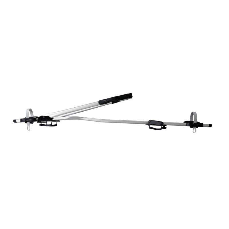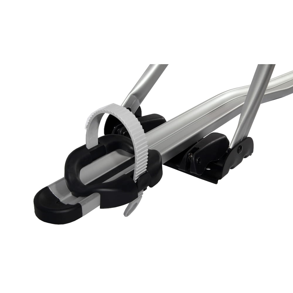 Wyposażony w przesuwne podstawki do kół oraz gumowe paski zębate, co zapewnia stabilność roweru podczas jazdy. Dwa zamki chroniące przed kradzieżą zarówno uchwyt, jak i rower. ożliwość montażu roweru z prawej strony, z opcją przełożenia na lewą stronę. Kompatybilny z One Key System.