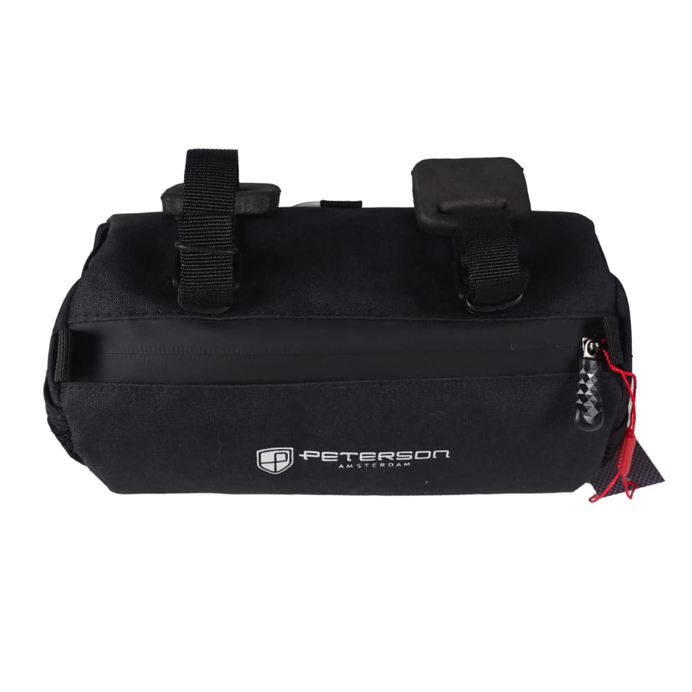 Cylindryczna Torba na kierownicę Peterson ML08 1.5L Czarna to idealny towarzysz podczas rowerowych przejażdżek, podczas których potrzebujesz więcej miejsca na swój bagaż. Codzienne dojazdy wymagają praktycznych i wytrzymałych rozwiązań. Wszechstronna konstrukcja z wodoodpornej tkaniny Cordura w kolorze czarnym i system montażu umożliwia zamocowanie torby do kierownicy roweru lub do ramy za pomocą dwóch uchwytów paskowych z plastikowymi sprzączkami, regulowane paski tkaninowe umożliwiają idealne dopasowanie, a gumka ze stoperem w centralnej części stabilizuje torbę podczas jazdy. Torba posiada wypełnienie piankowe, które usztywnia całą torbę. Torba posiada bryzgoszczelne zamki. Boczne siatkowe kieszonki pozwalają na przewożenie najpotrzebniejszych drobiazgów w zasięgu ręki.
