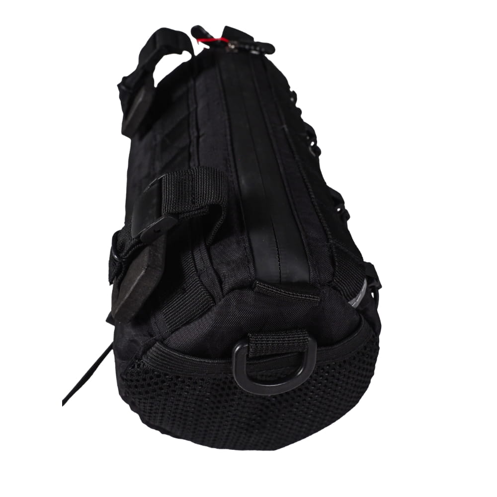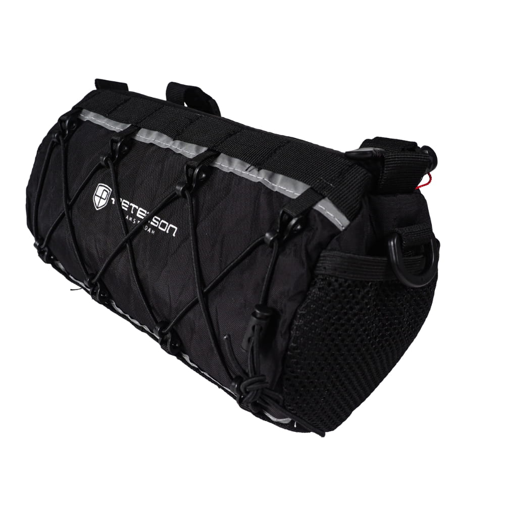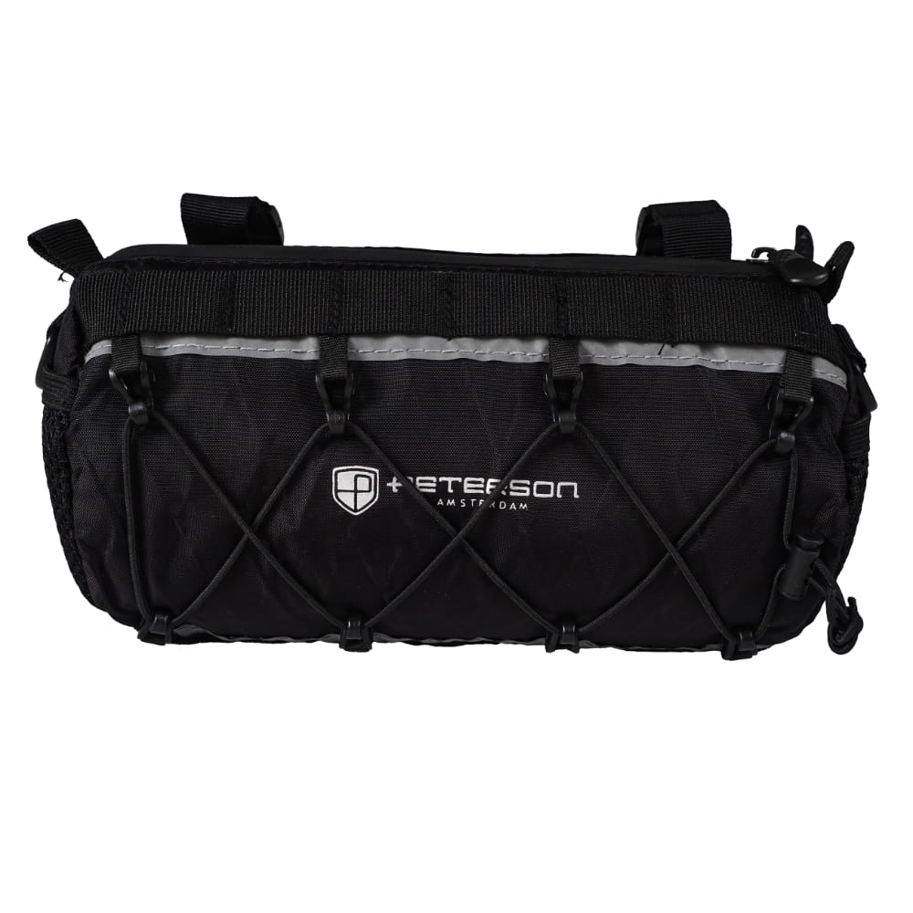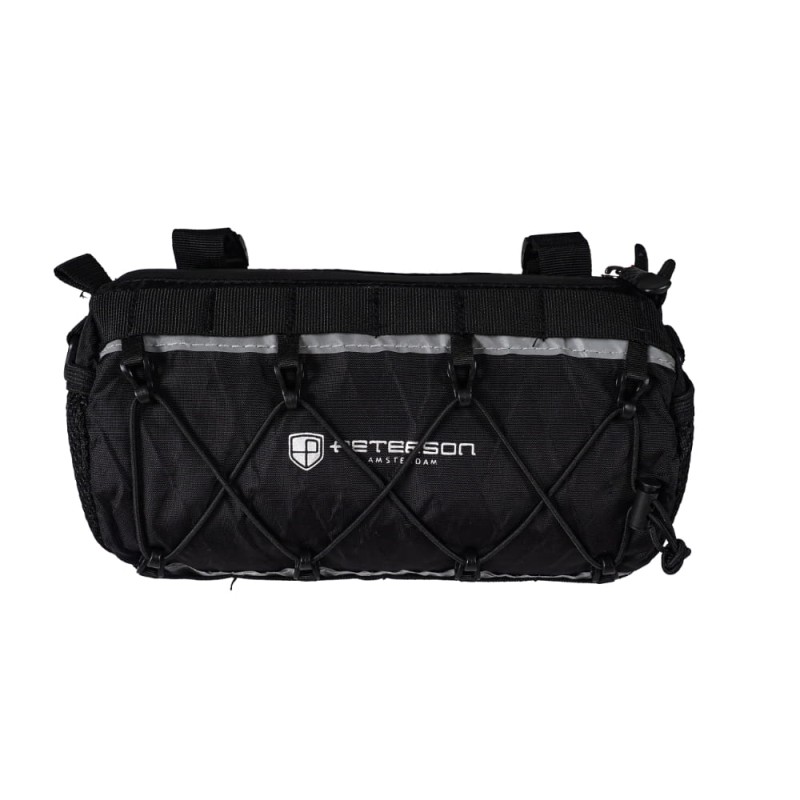Cylindryczna Torba na kierownicę Peterson ML09 2L Czarna to idealny towarzysz podczas rowerowych przejażdżek, podczas których potrzebujesz więcej miejsca na swój bagaż. Codzienne dojazdy wymagają praktycznych i wytrzymałych rozwiązań. Wszechstronna konstrukcja z wodoodpornej tkaniny Cordura w kolorze czarnym z elegancką fakturą w kształcie rombu i system montażu umożliwia zamocowanie torby do kierownicy roweru lub do ramy za pomocą dwóch uchwytów paskowych z plastikowymi sprzączkami, regulowane paski tkaninowe umożliwiają idealne dopasowanie, a gumka ze stoperem w centralnej części stabilizuje torbę podczas jazdy. Torbę można wygodnie zabrać ze sobą, dzięki dołączonemu paskowi na ramię, który montuje się do uchwytów znajdujących się przy torbie. Torba posiada usztywnienie z tworzywa sztucznego, które można wyciągnąć np. do prania. Torba posiada bryzgoszczelne zamki. Boczne siatkowe kieszonki pozwalają na przewożenie najpotrzebniejszych drobiazgów w zasięgu ręki.