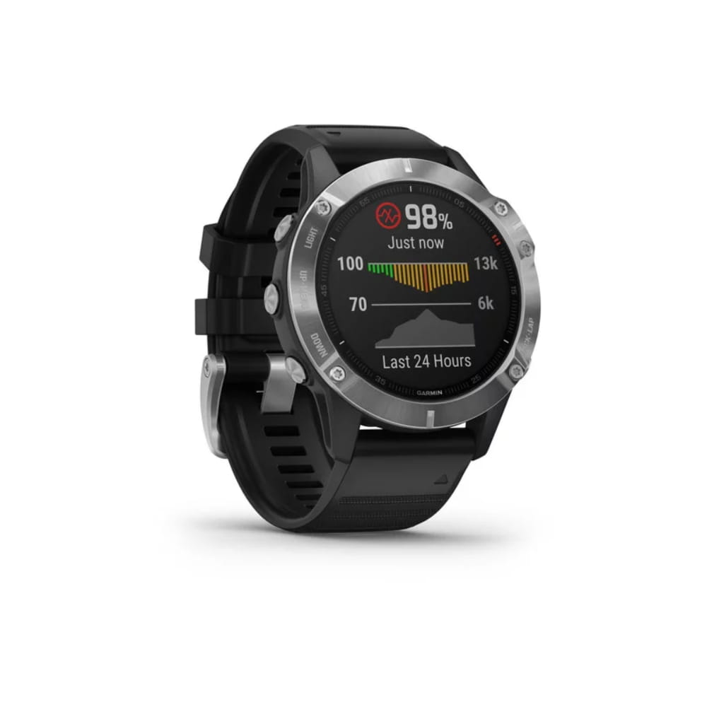Zegarek sportowy Garmin Fenix 6 srebrny z czarnym paskiem
