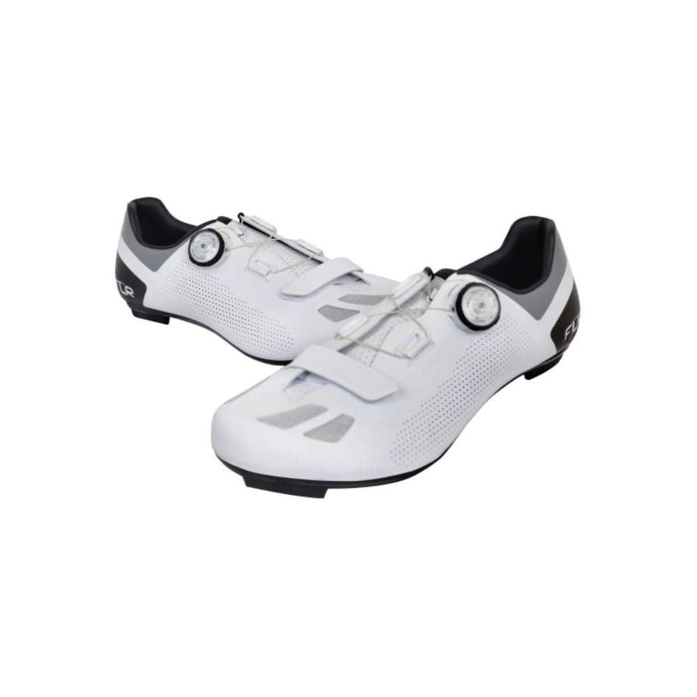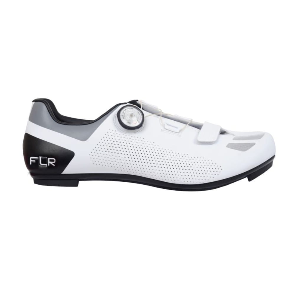 Eleganckie, aerodynamiczne i wygodne, wzorowane na profesjonalnych butach, to idealne połączenie wydajności, sztywności i wsparcia na drodze. Buty szosowe FLR F-11 wykorzystują bezszwową konstrukcję składającą się z pojedynczego kawałka doskonałej mikrofibry, aby dostosować się idealnie do kształtu stopy. System sznurowania wykorzystuje pojedynczy pasek na rzepy i pasek do bezpiecznego dopasowania w każdym punkcie stopy. Połączenie nylonowych oczek, perforowanych otworów i oddychającego języka zapewnia doskonałą wentylację. Buty FLR F-11 są wyposażone w podeszwę R250 w celu zwiększenia wydajności i przeniesienia mocy na pedały bez uszczerbku na wadze i komforcie. Oparte na osiągach dzięki profesjonalnemu projektowi, F-11 zadowolą każdego, kto poszukuje swojej ulubionej pary butów.