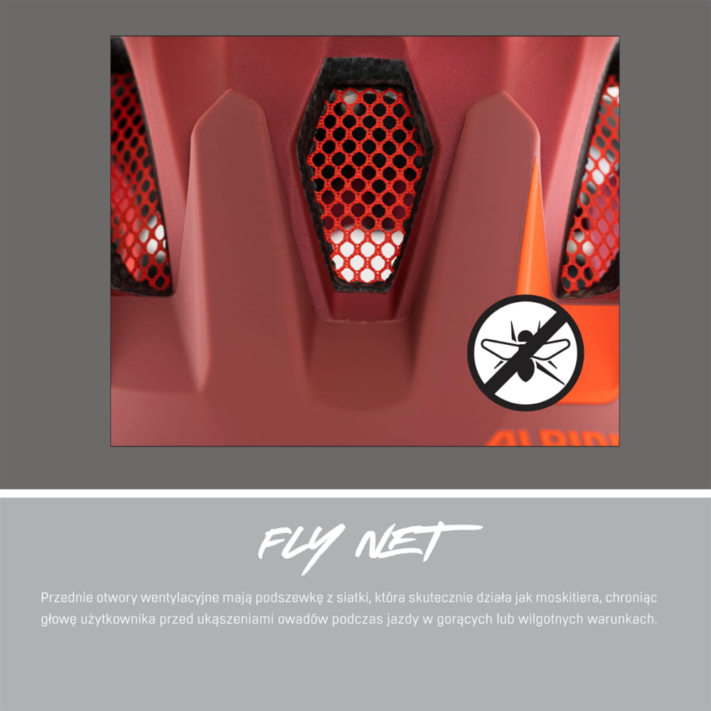 - Fly net - Siatka w przednich otworach wentylacyjnych utrzymuje owady z dala od Twojej głowy