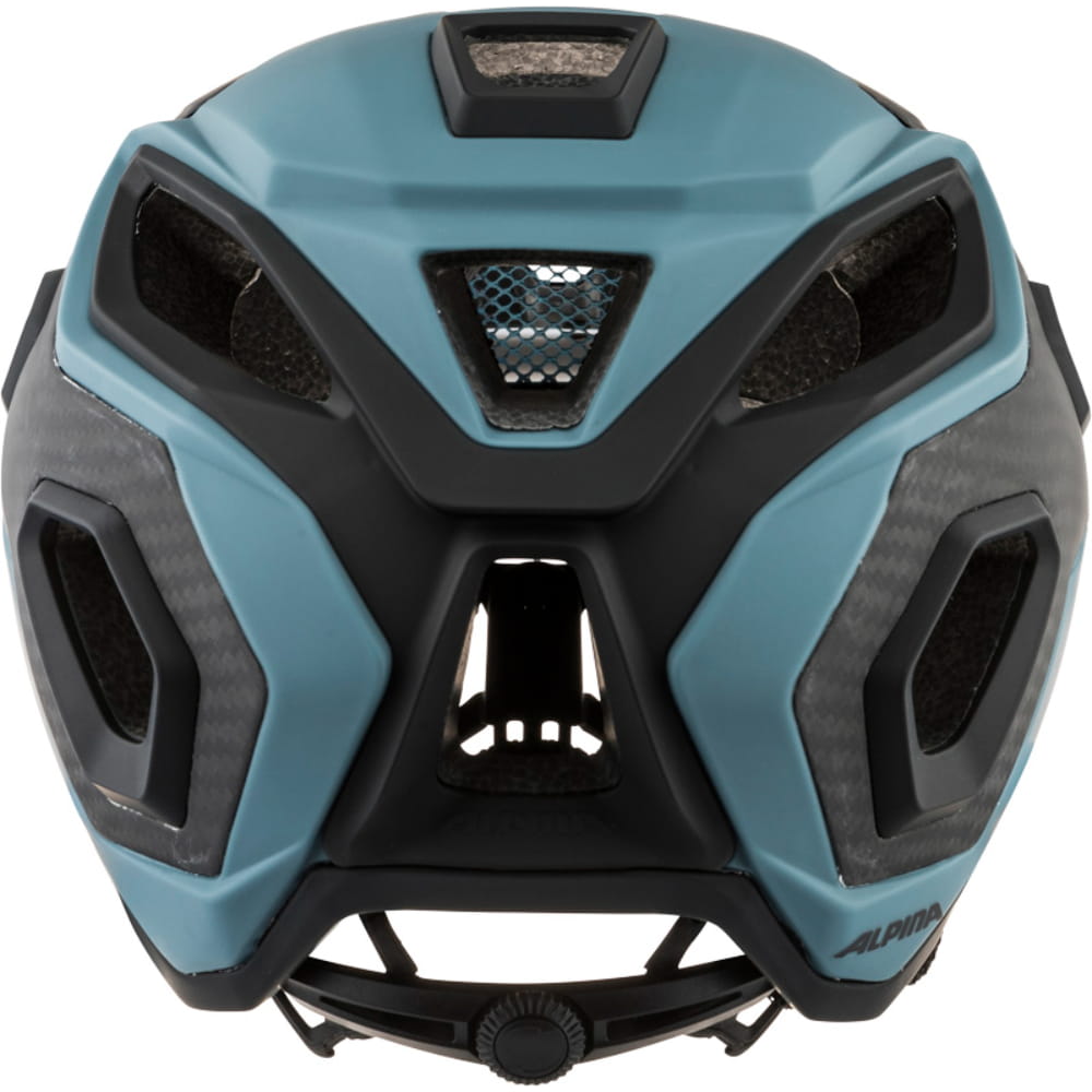 Każdy, kto ma na głowie kask Alpina Rootage, ma najlepszą możliwą ochronę na szlaku. Maksymalne bezpieczeństwo, optymalne dopasowanie i najlepsza możliwa klimatyzacja wnętrza, to główne cechy kasku. Aby zapewnić maksymalne bezpieczeństwo, w Alpina Rootage zastosowano karbon. Płytki z włókna węglowego są wbudowane w zewnętrzną powłokę kasku, dzięki czemu jest on bardziej odporny. Krawędzie kasku są wykończone Edge Protect, dodatkową ceramiczną powłoką, zapewniającą ochronę krawędziom kasku. Wkładki z poliwęglanu wzmacniają duże otwory wentylacyjne, które wraz z wewnętrznymi kanałami zapewniają głowie możliwie najlepszy dopływ chłodnego powietrza.