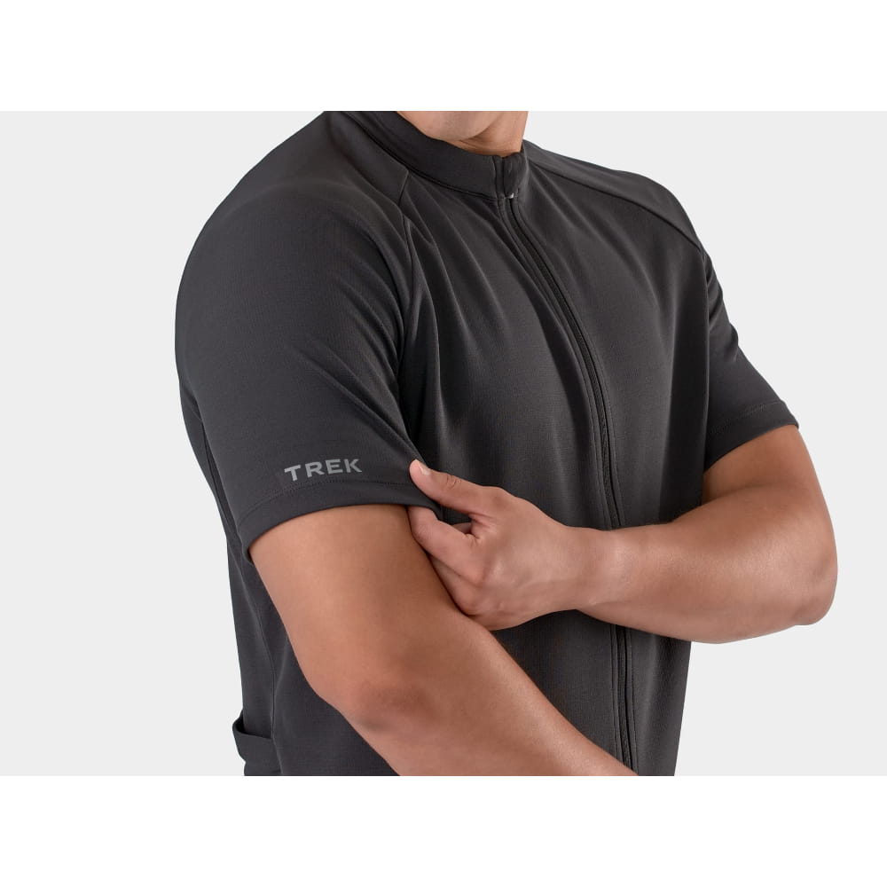 Koszulka rowerowa Trek Solstice zapewnia niezawodną wydajność zarówno dla nowych rowerzystów, jak i dla entuzjastów, ma luźniejszy krój oraz obejmuje elementy dostosowane do jazdy na rowerze, takie jak materiały odprowadzające wilgoć, otwarte tylne kieszenie do przechowywania niezbędnych przedmiotów i dłuższy tył, który chroni plecy w pozycjach przyjmowanych podczas jazdy.