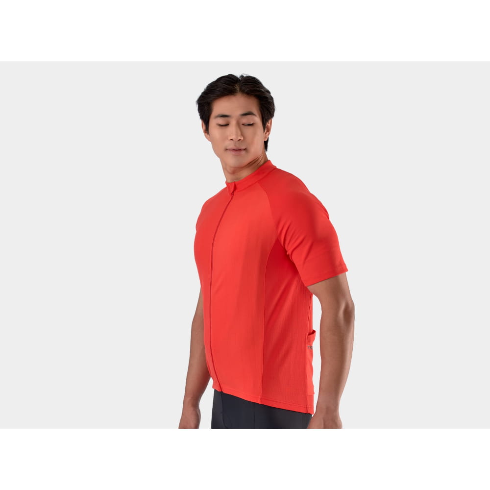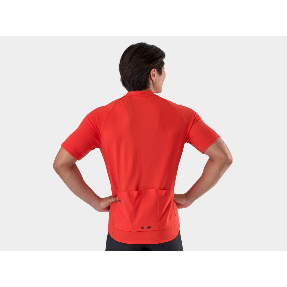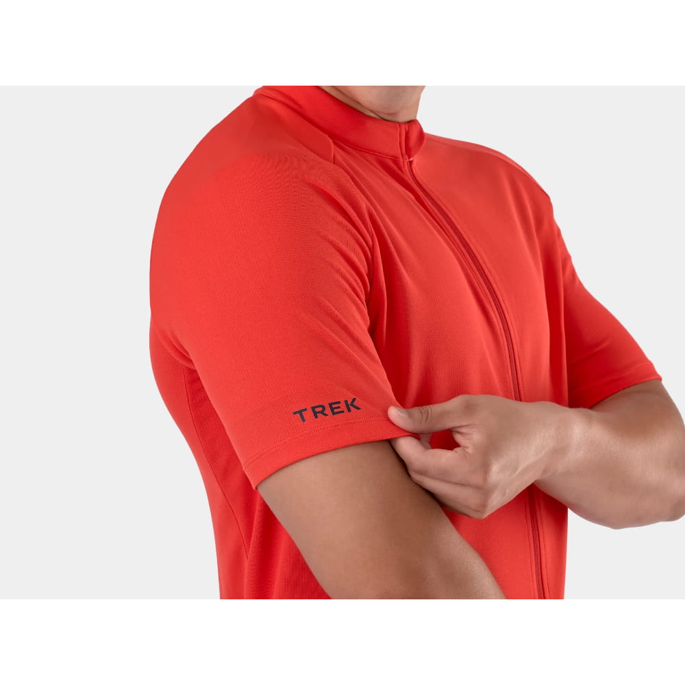 Koszulka rowerowa Trek Solstice zapewnia niezawodną wydajność zarówno dla nowych rowerzystów, jak i dla entuzjastów, ma luźniejszy krój oraz obejmuje elementy dostosowane do jazdy na rowerze, takie jak materiały odprowadzające wilgoć, otwarte tylne kieszenie do przechowywania niezbędnych przedmiotów i dłuższy tył, który chroni plecy w pozycjach przyjmowanych podczas jazdy.