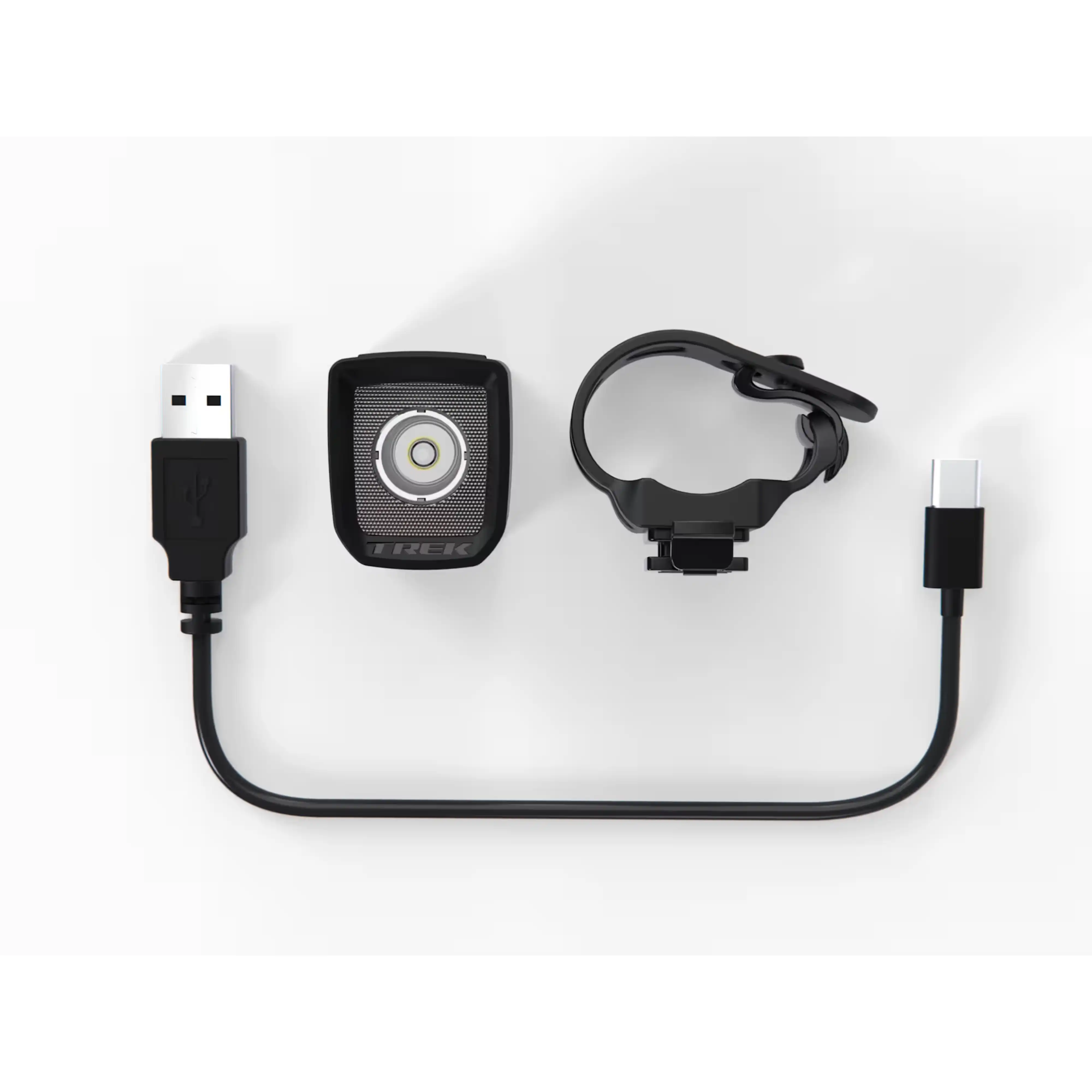 Lampka przednia Trek Ion 100 R jest widoczna w dzień i zaprojektowana z myślą o mieście. Dzięki skupionemu snopowi światła i trybowi niejednostajnego migania widoczna jest z ponad 900 m w ciągu dnia. Wbudowane oświetlenie boczne poprawia widoczność, a osłona chroni oczy rowerzysty przed światłem.