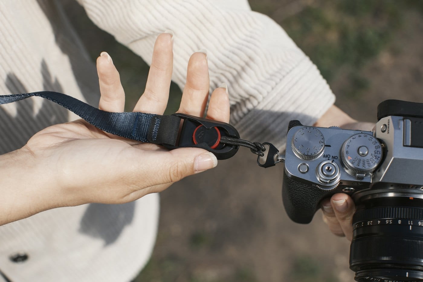 Peak Design CUFF v3 to wyjątkowo lekki a jednocześnie bardzo wytrzymały pasek na nadgarstek. Doskonale sprawdzi się jako zabezpieczenie aparatu przed wypadnięciem z ręki, ułatwi trzymanie, a w razie potrzeby umożliwi wypięcie aparatu jednym palcem. Nieużywany może pełnić funkcję bransoletki, nie powodując dyskomfortu noszenia. Nowością względem poprzednich modeli jest materiał, z którego został zrobiony oraz aluminiowa klamerka jeszcze bardziej ułatwiająca regulację paska wokół nadgarstka.