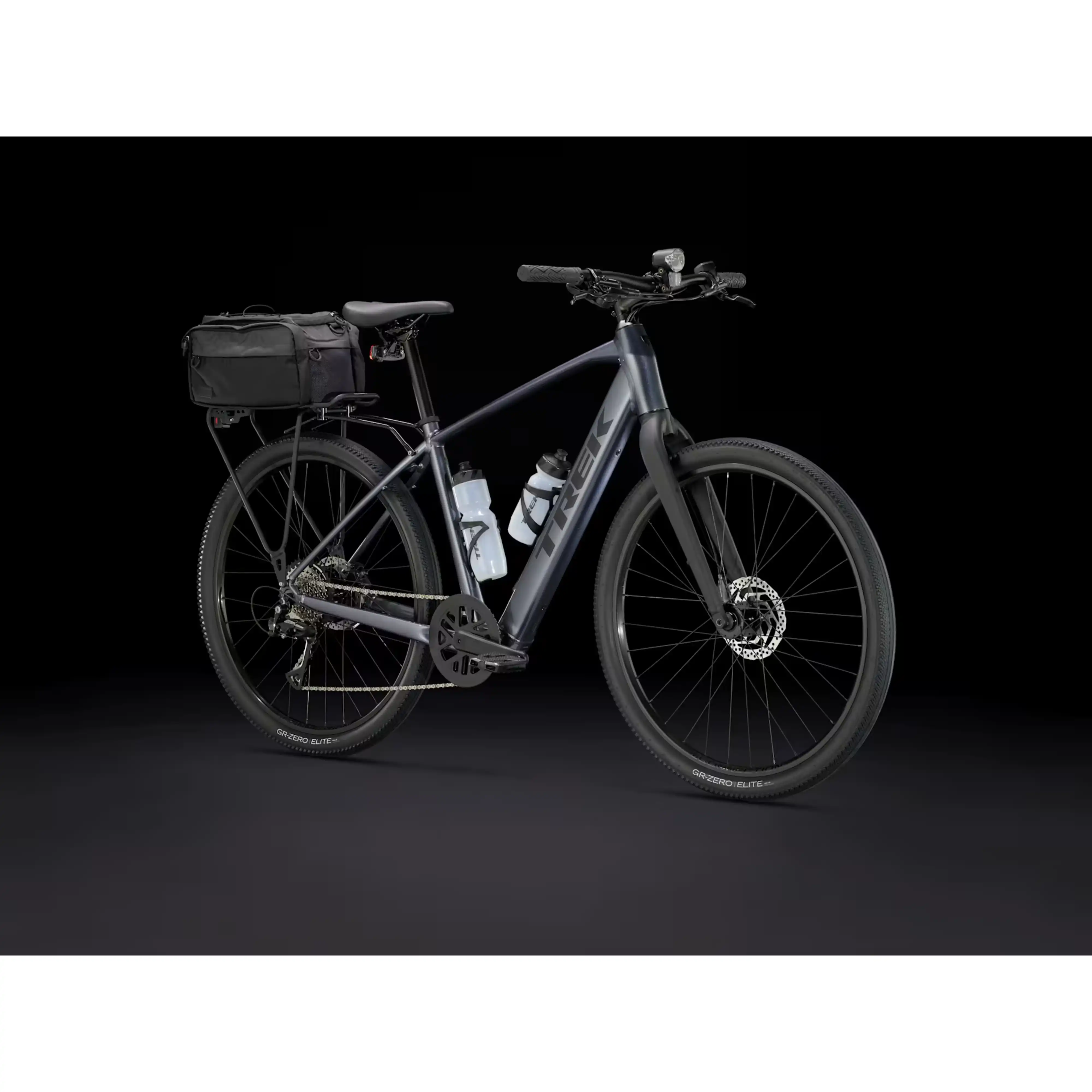 Lekka aluminiowa rama i widelec, dostępny tylko u Treka system wspomagania pedałowania Hyena z silnikiem w piaście (250 W, 40 Nm) zapewniającym wsparcie nawet do 25 km/h, a także akumulator 250 Wh pozwalający przejechać nawet 55 km na jednym doładowaniu. Do tego sztywne koła 650b i szerokie opony 50c dla sprawnej i komfortowej jazdy po zróżnicowanym terenie, niezawodny 8-biegowy napęd Shimano, hydrauliczne hamulce tarczowe, zintegrowane światła zasilane akumulatorem i nóżka.