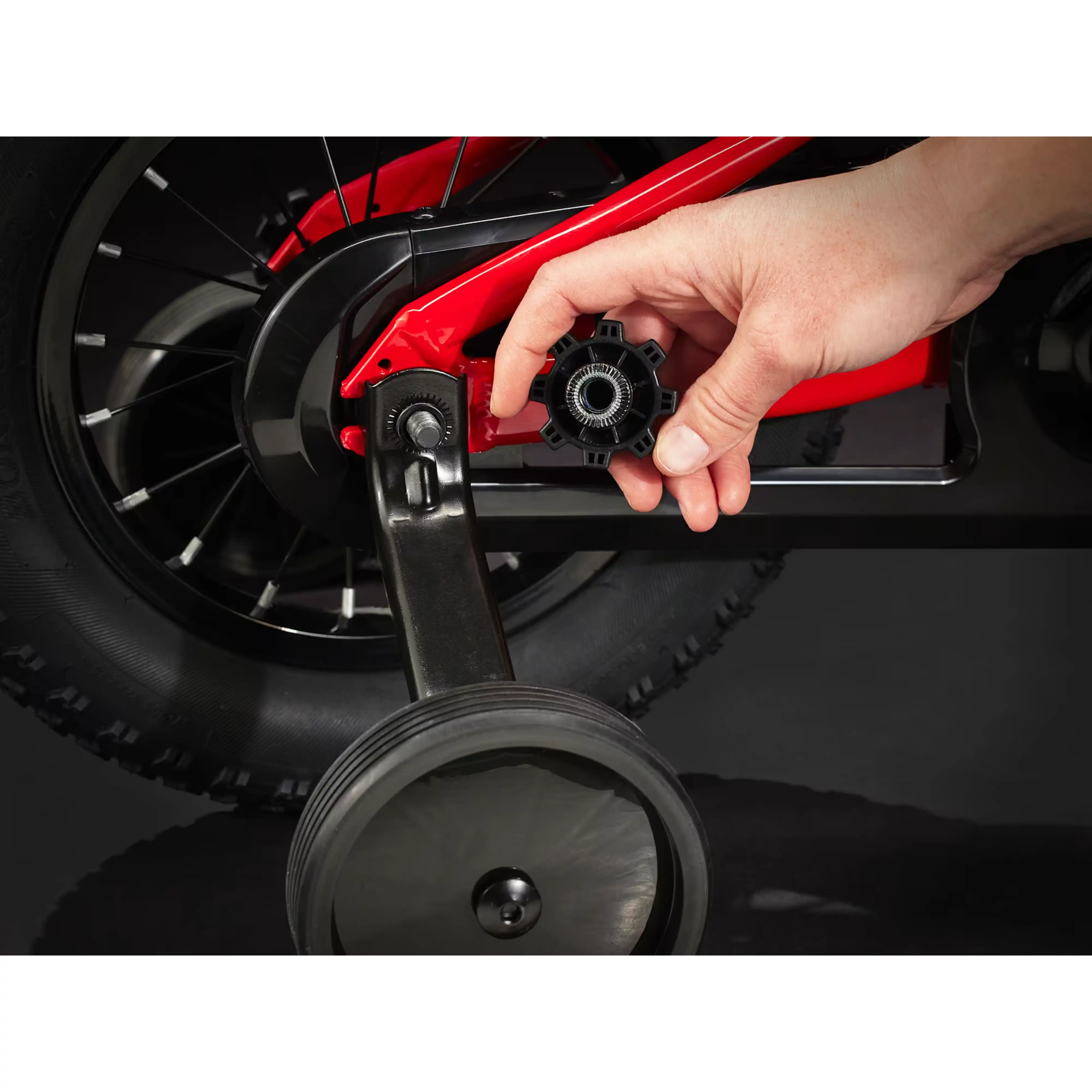 Ten przyjazny dla dzieci rower ma wbudowaną w siodełko rączkę, dzięki której możesz pomagać dziecku w jeździe, a do tego hamulec nożny i niewymagające narzędzi kółka do nauki jazdy, które założysz i zdejmiesz za pomocą pokrętła. Lekka aluminiowa rama ułatwi też Twoim dzieciom manewrowanie.