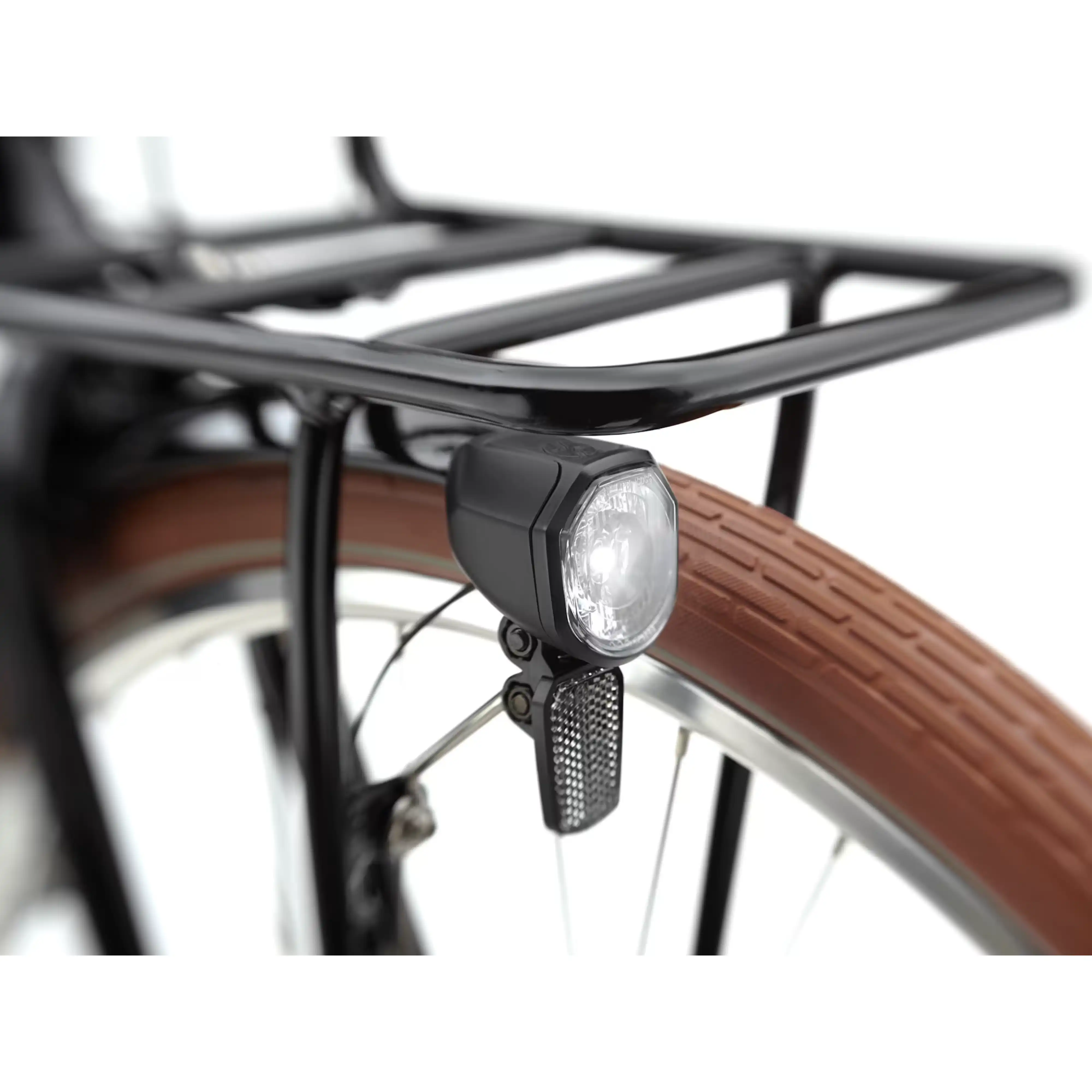 Potrzebujesz roweru elektrycznego do poruszania się po mieście, dojazdów do pracy lub załatwiania spraw. Nisko poprowadzona rura dolna ułatwia wsiadanie na rower i zsiadanie z niego, a prostą funkcjonalność zwiększają błotniki, przednia i tylna lampka LED, wytrzymały bagażnik oraz odporne na przebicie opony 700c Schwalbe.