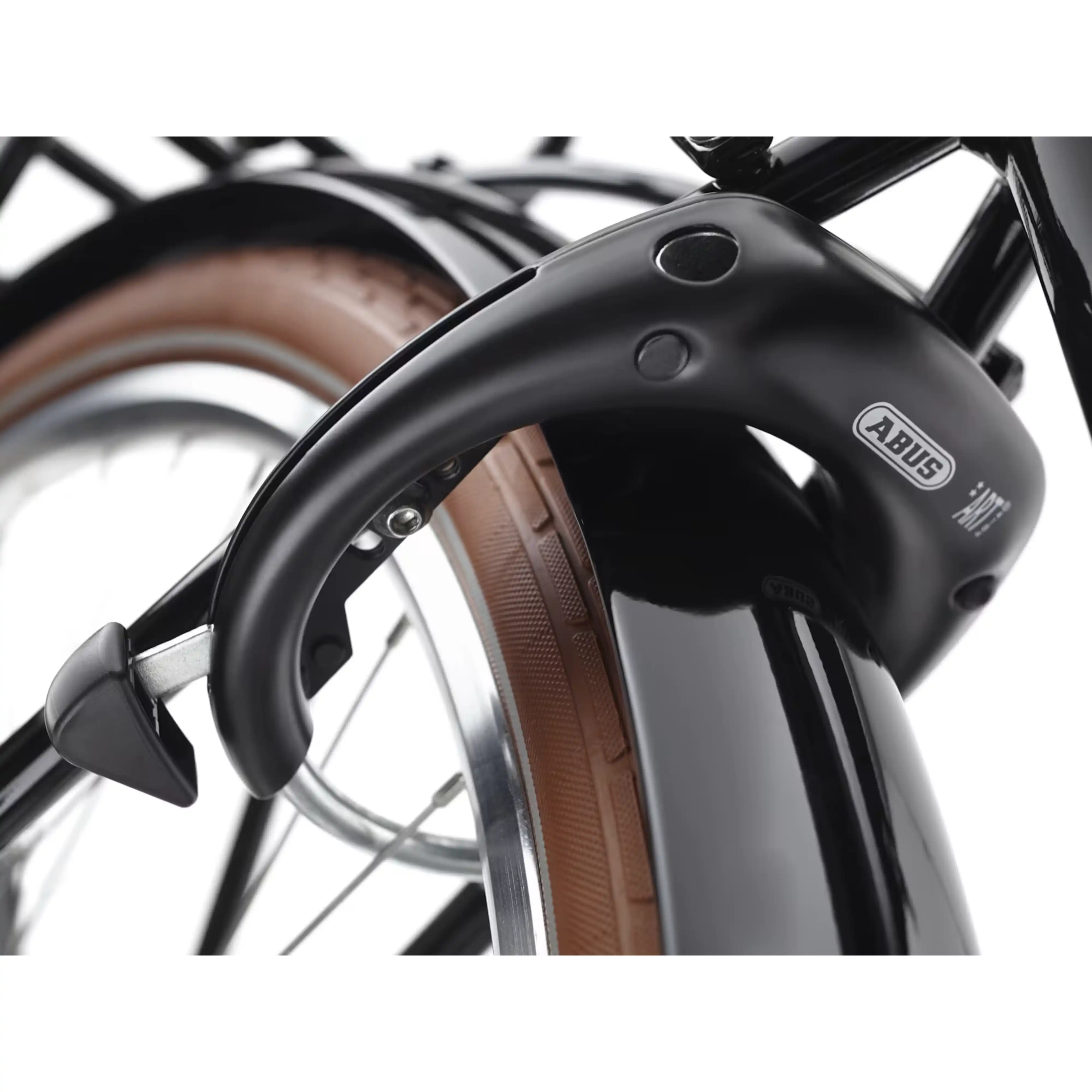 - Dodatki: Blokada ramy ABUS, odblaskowa naklejka na akumulatorze, dzwonek i bagażniki przednie/tylne, malowana osłona łańcucha, wewnętrzne prowadzenie linek i przewodów oraz osprzęt ze stali nierdzewnej i zabezpieczony przed korozją