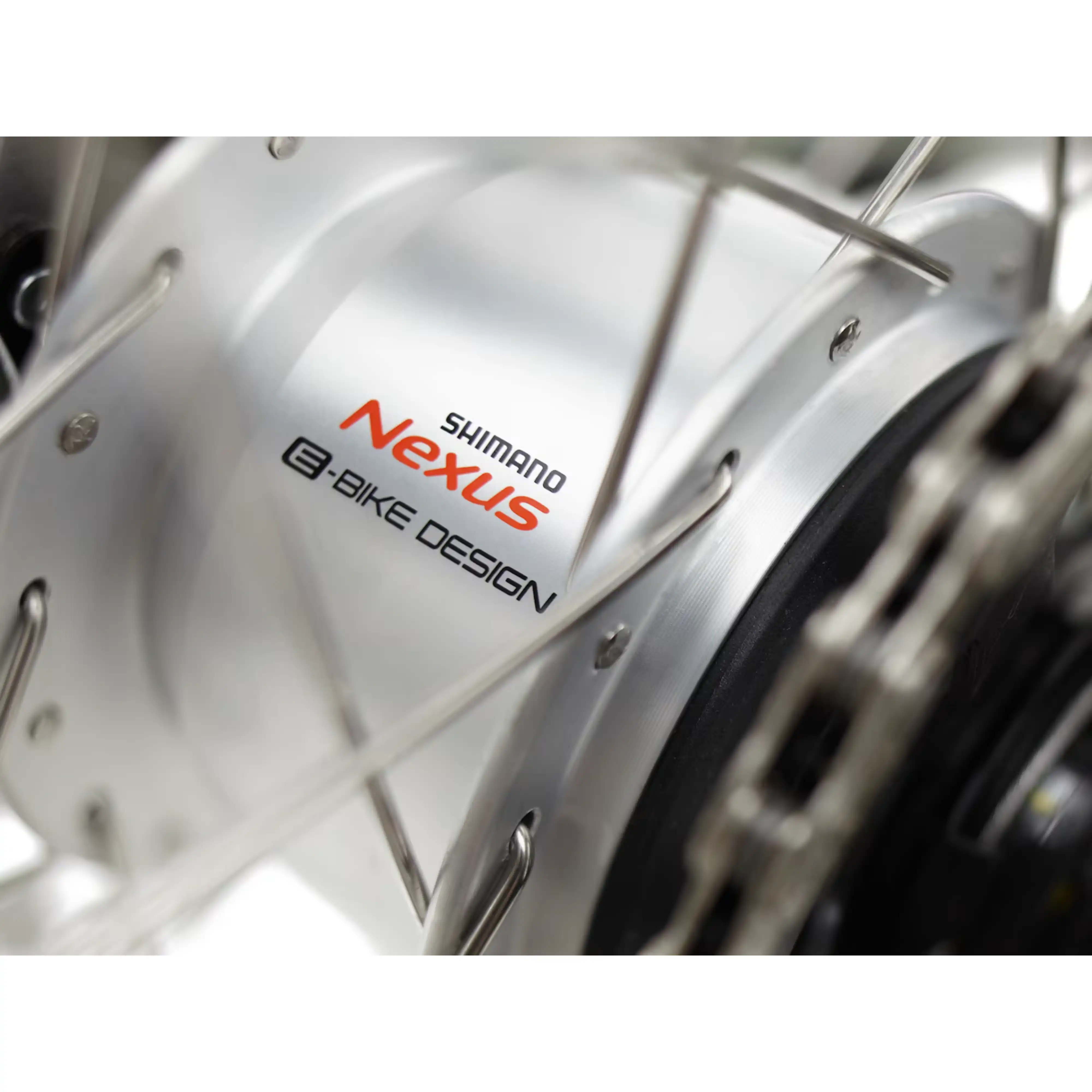 - Tylna piasta: Shimano Nexus Inter-5E, 5-biegowa, pod hamulce tarczowe center lock, 36 otworów