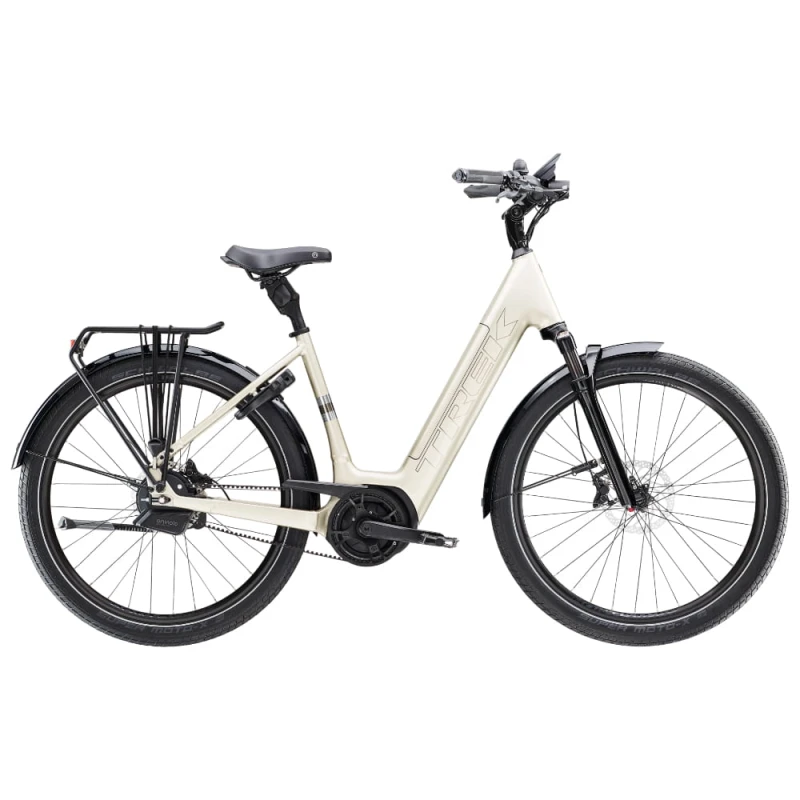 Rower elektryczny Trek District+ 5 o niskim przekroku 545Wh 2025 Beżowy