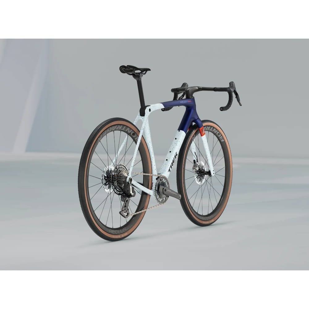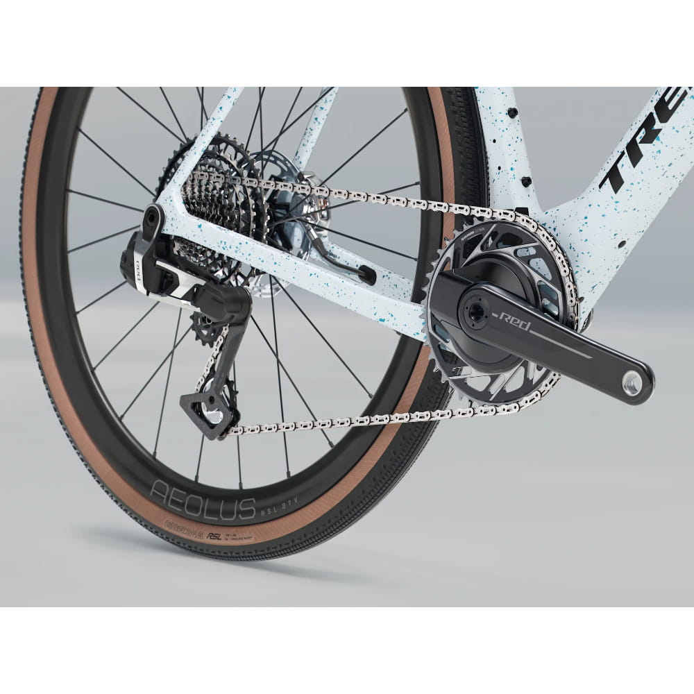 Lekka i aerodynamiczna rama z włókna węglowego OCLV serii 800 z komfortową technologią IsoSpeed oraz mnóstwem mocowań, by zabrać to, co potrzebne na wyścig. Koła z włókna węglowego Bontrager Aeolus RSL 37V oraz karbonowa kierownica z mostkiem Trek Aero RSL zapewniają lekkość i zwinność. Do tego jeszcze dodano najlżejszy i najbardziej ergonomiczny napęd SRAM RED XPLR AXS z bezprzewodowym przerzucaniem, stworzony na trudniejsze trasy.