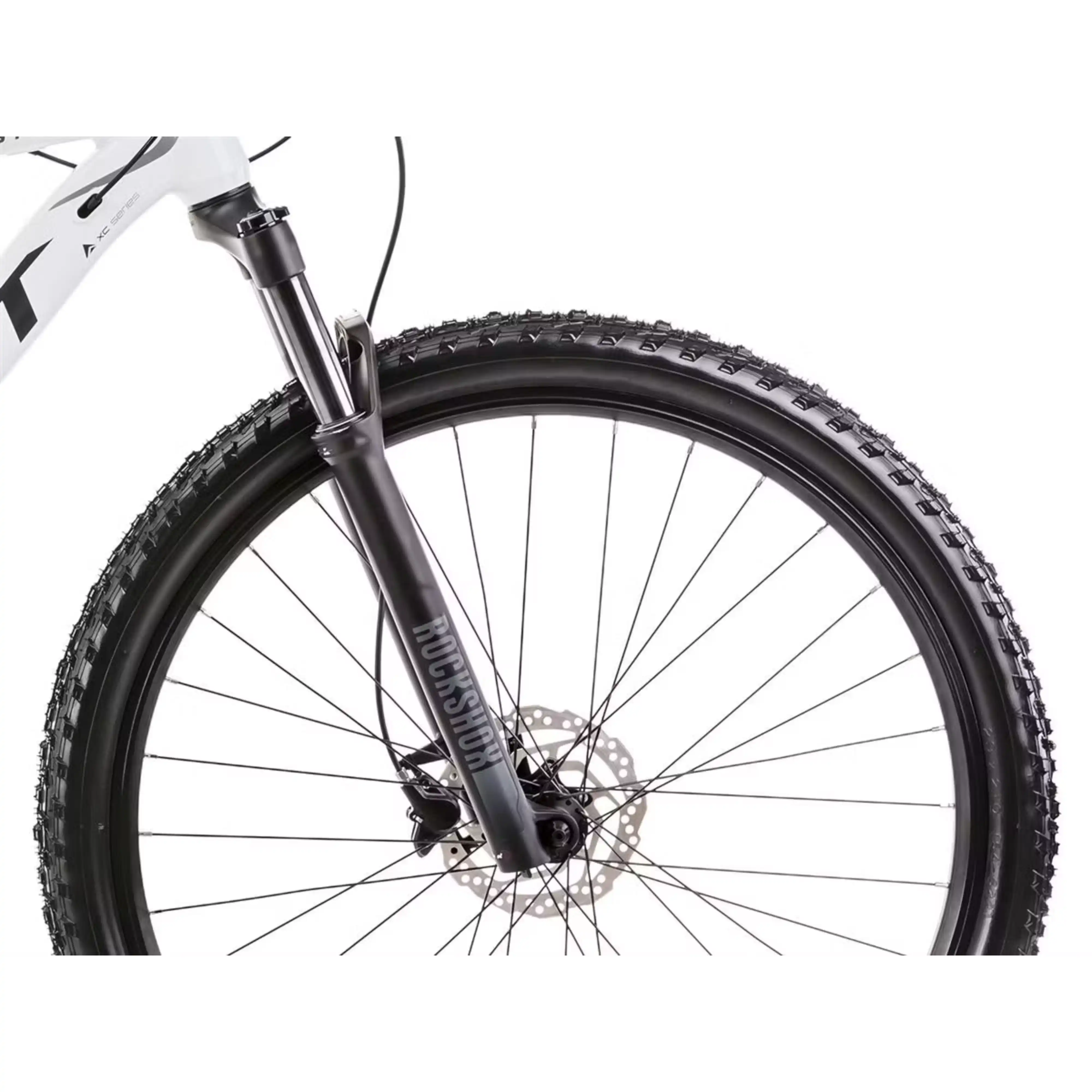 Mustang M7 to konkretny rower górski, który powstał z myślą o eksplorowaniu nowych miejsc i czerpaniu jak najwięcej frajdy z jazdy po bezdrożach. W terenie nawierzchnia bywa często wyboista dlatego M7 wyposażyliśmy w Rock Shox FS Recon Silver TK o skoku 100 mm tłumiący napotkane wyboje. Dostępne za sprawą napędu Shimano Deore 22 biegi docenią z pewnością mniej zaawansowani kolarze lub Ci, którzy pewniej czują się mając pod ręką większy zakres zmiany biegów. Japoński producent zadbał również o skuteczność hamowania dzięki hamulcom hydraulicznym MT200. Rower toczy się gładko za sprawą opon Schwalbe Smart Sam 29x2.1, które zapewniają optymalną przyczepność, wszędzie tam gdzie zajdzie taka potrzeba. Mustang M7 występuje w 3 dostępnych rozmiarach.