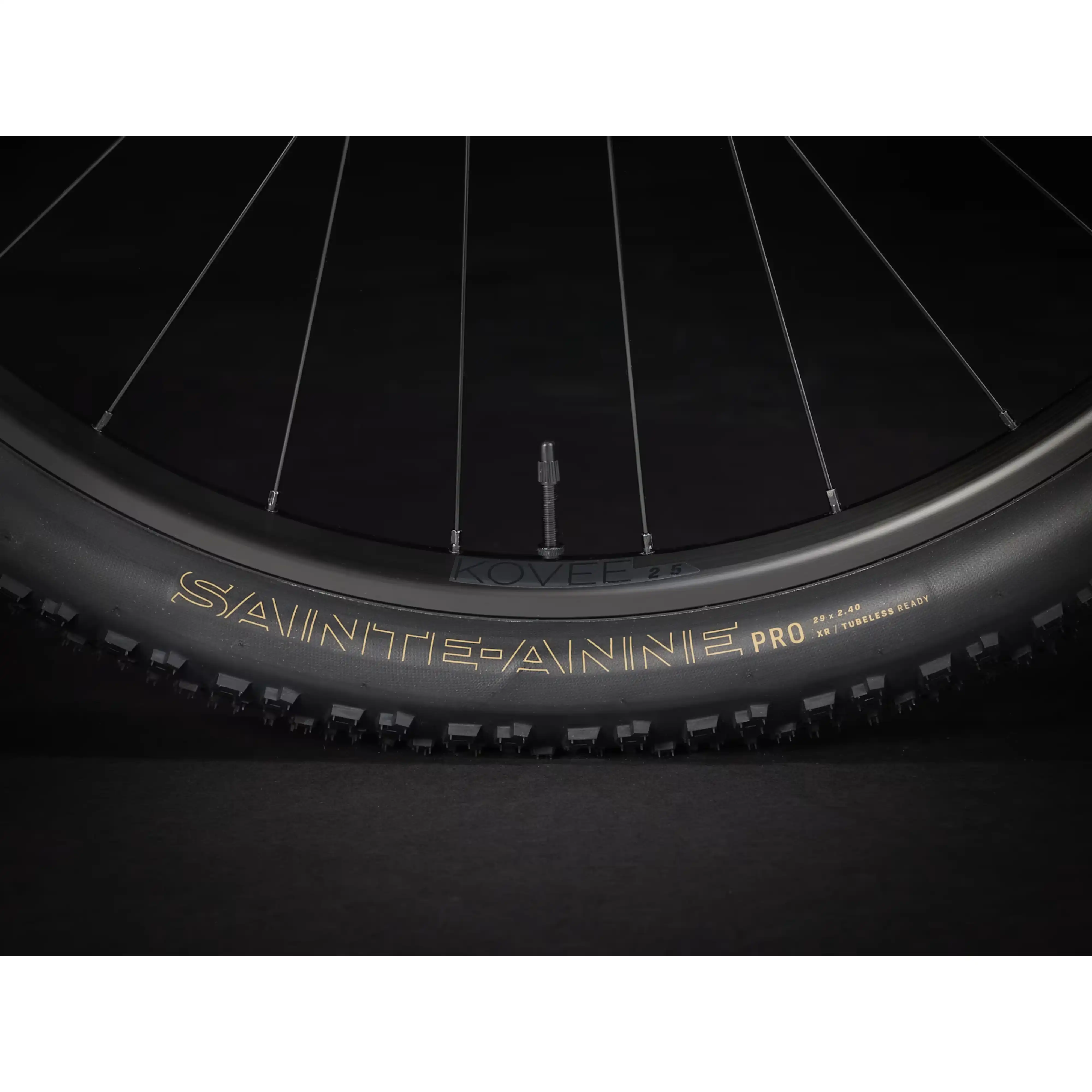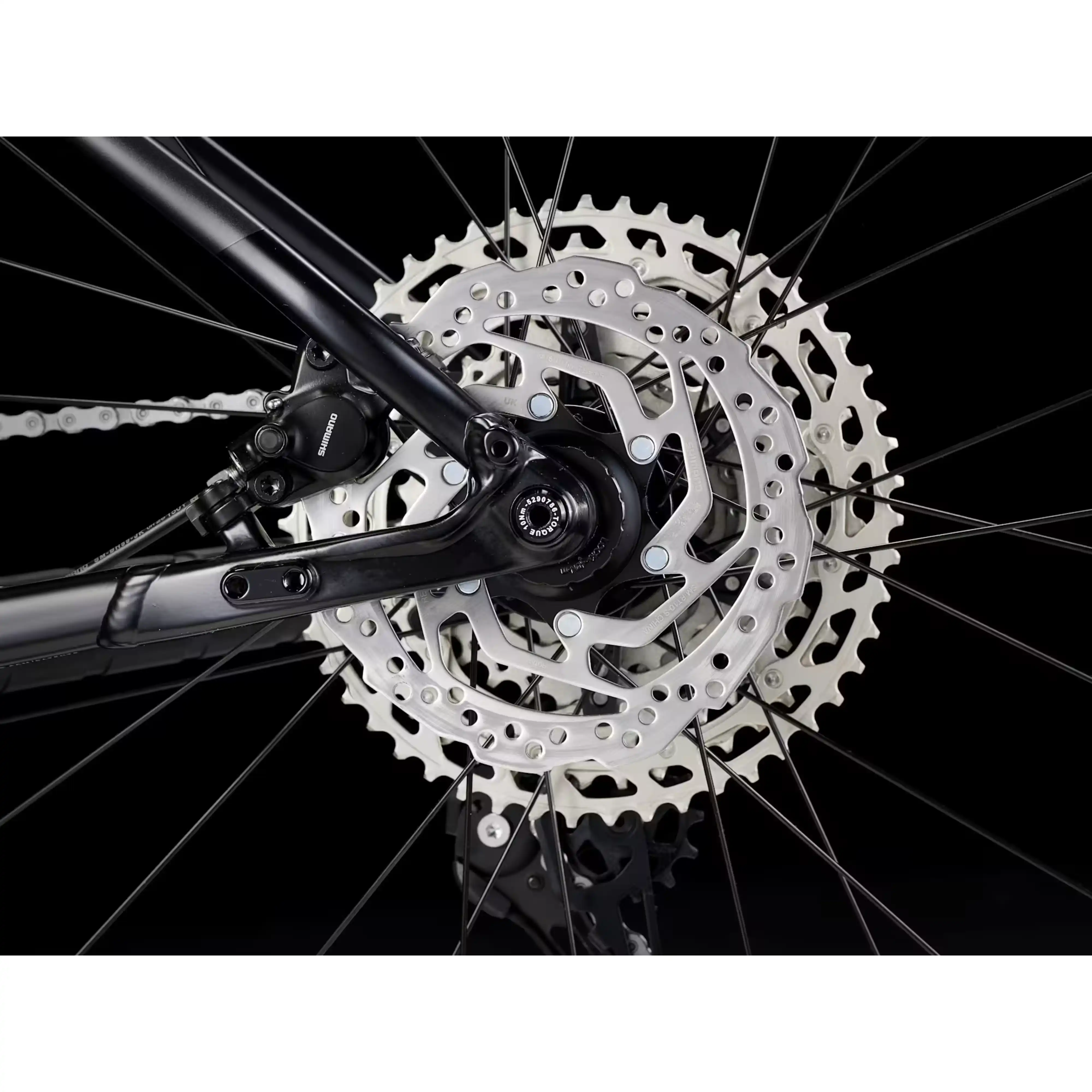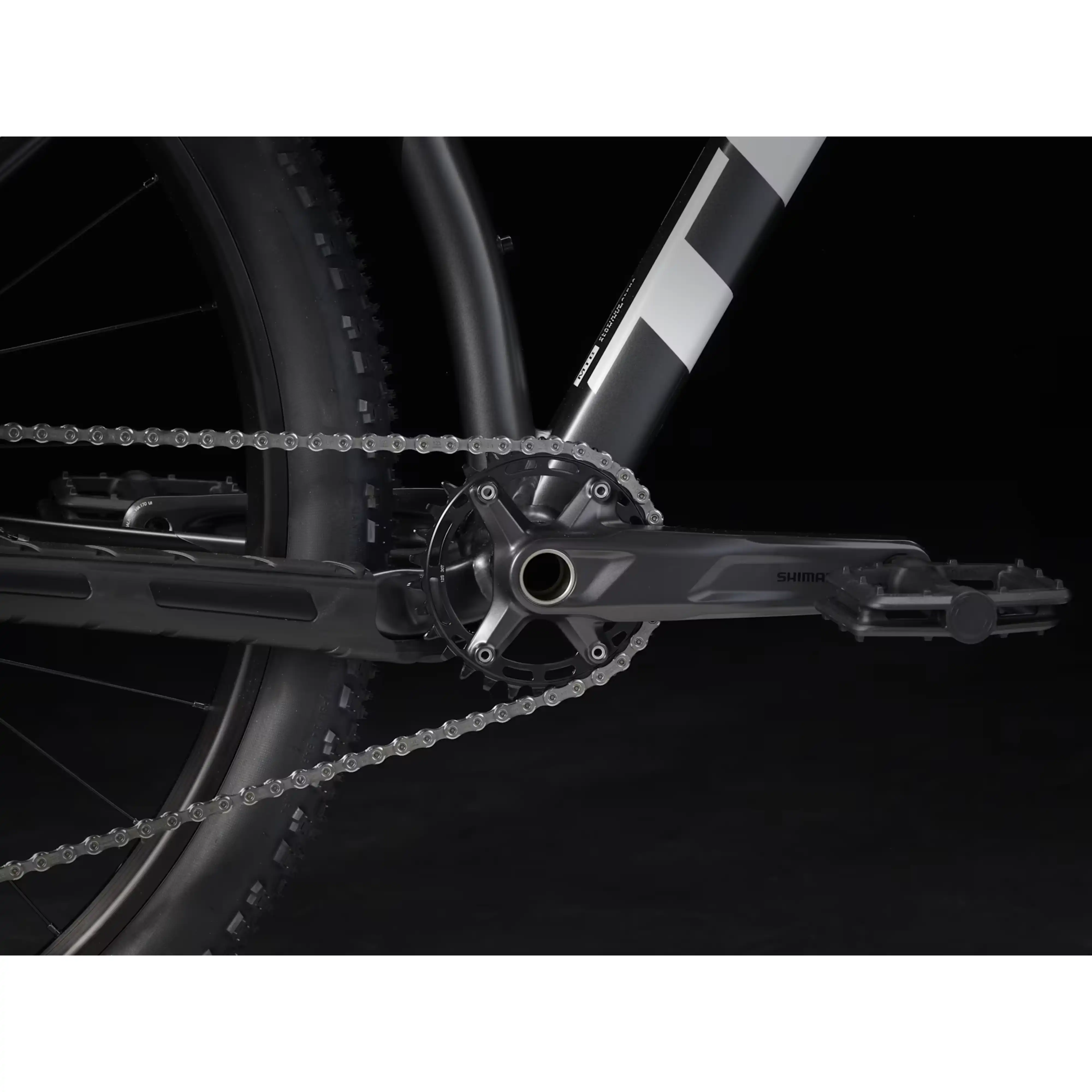 Lekka rama hardtail z Alpha Platinum Aluminium o nowoczesnej geometrii XC z rozstawem piasty Boost 148 mm gwarantującym sztywność pod znacznym obciążeniem. Dodatkowo, wygładzający trasę widelec amortyzowany RockShox Judy Silver o 120 mm skoku ze sprężyną powietrzną Solo Air oraz blokadą Turnkey. Płynnie pracujący 12-biegowy napęd Shimano łączący komponenty Deore i XT, koła przystosowane do zastosowania bezdętkowego Botrager Kovee, sztyca regulowana Bontrager Line z wewnętrznym prowadzeniem linki oraz hydrauliczne hamulce tarczowe.