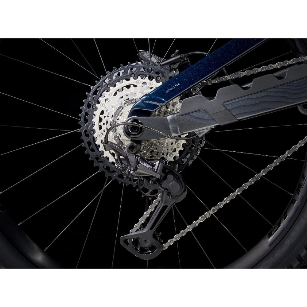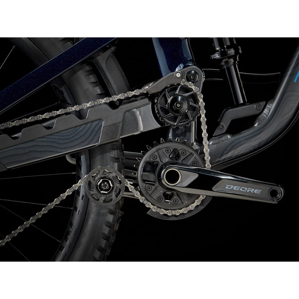 Rama z aluminium Alpha Platinum z zawieszeniem z wysokim punktem obrotu i kółkiem napinającym, a także dodatkowym miejscem na przechowywanie wewnętrzne. 170 mm skoku z przodu i z tyłu dzięki zastosowaniu widelca FOX Rhythm 36 ze sprężyną powietrzną Float EVOL i damperem GRIP oraz amortyzacji Fox Performance Float X. Mnóstwo biegów do łatwiejszej wspinaczki dzięki napędowi Shimano XT, sztyca regulowana Bontrager Line Dropper i zestaw mieszanych kół Bontrager Line Comp 30, 29 cali z przodu i 27,5 cala z tyłu, do zastosowań bezdętkowych z piastą Rapid Drive.