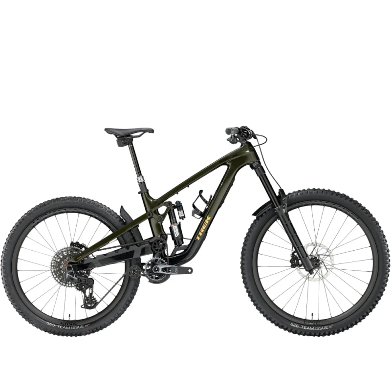 Rama z włókna węglowego OCLV Mountain z zawieszeniem z wysokim punktem obrotu, a także dodatkowym miejscem na schowek wewnętrzny. Skok 170 mm z przodu i z tyłu zapewniają widelec RockShox ZEB Ultimate ze sprężyną DebonAir i tłumieniem Charger 3.1 RC2 oraz damper RockShox Vivid Ultimate. Napęd SRAM X0 Eagle AXS Transmission zapewnia bezprzewodową zmianę biegów, które zawsze działa płynnie niezależnie od obciążenia, a regulowana sztyca Bontrager Line Dropper zapewnia przestrzeń do zmiany pozycji na rowerze. Mieszane koła karbonowe, 29-calowe z przodu i 27,5-calowe z tyłu, Bontrager Line Pro 30 do zastosowań bezdętkowych, z piastą Rapid Drive zapewniają wszechstronność w każdych warunkach.