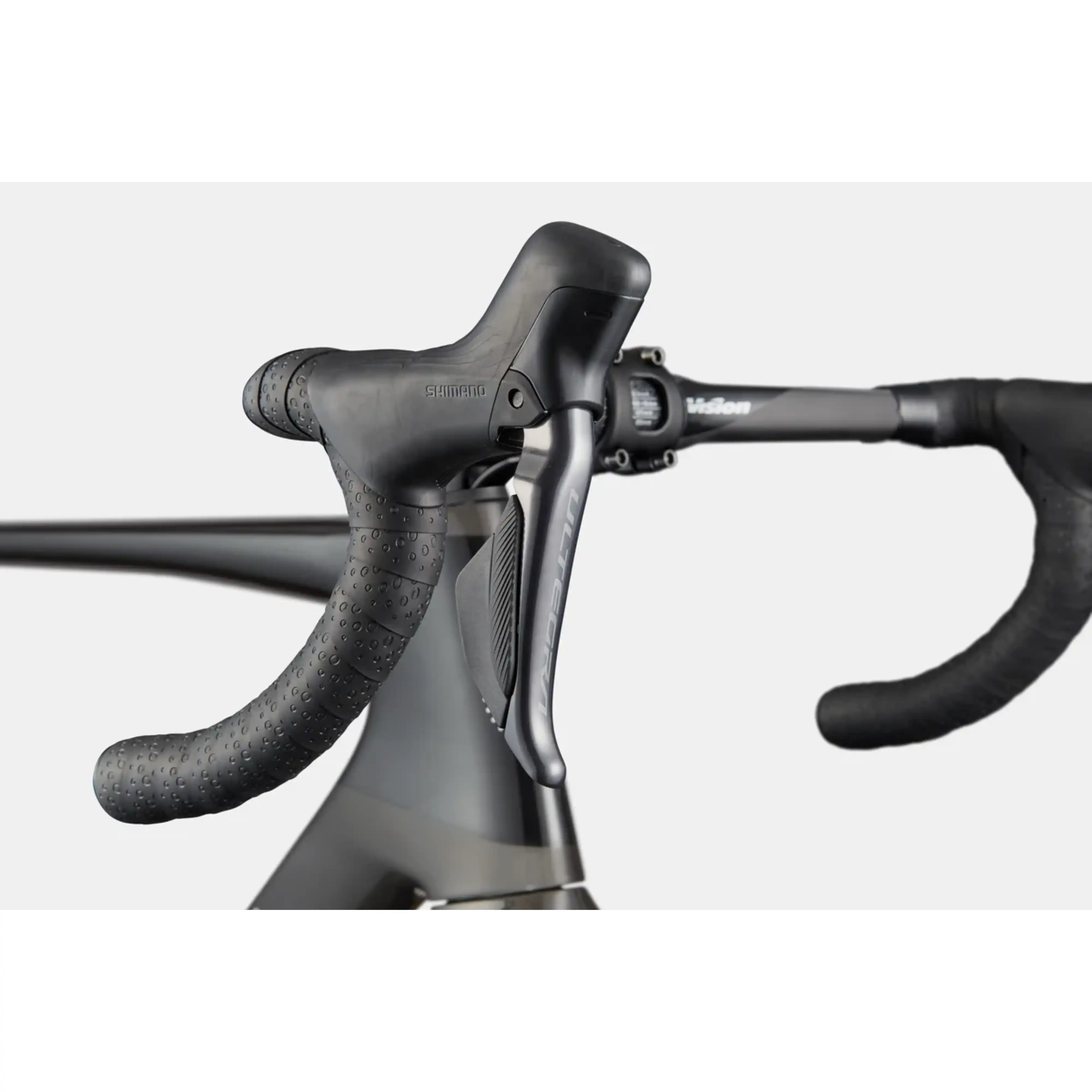 Aerodynamiczny kokpit, na który składają się kierownica Vision Trimax Carbon Aero oraz mostek Cannondale C1 Conceal z ukrytym prowadzeniem przewodów, redukuje opory powietrza i poprawia estetykę roweru. Całość uzupełnia komfortowe siodełko Fizik Vento Antares R5 z anatomicznym wycięciem, które zwiększa wygodę podczas długich tras.