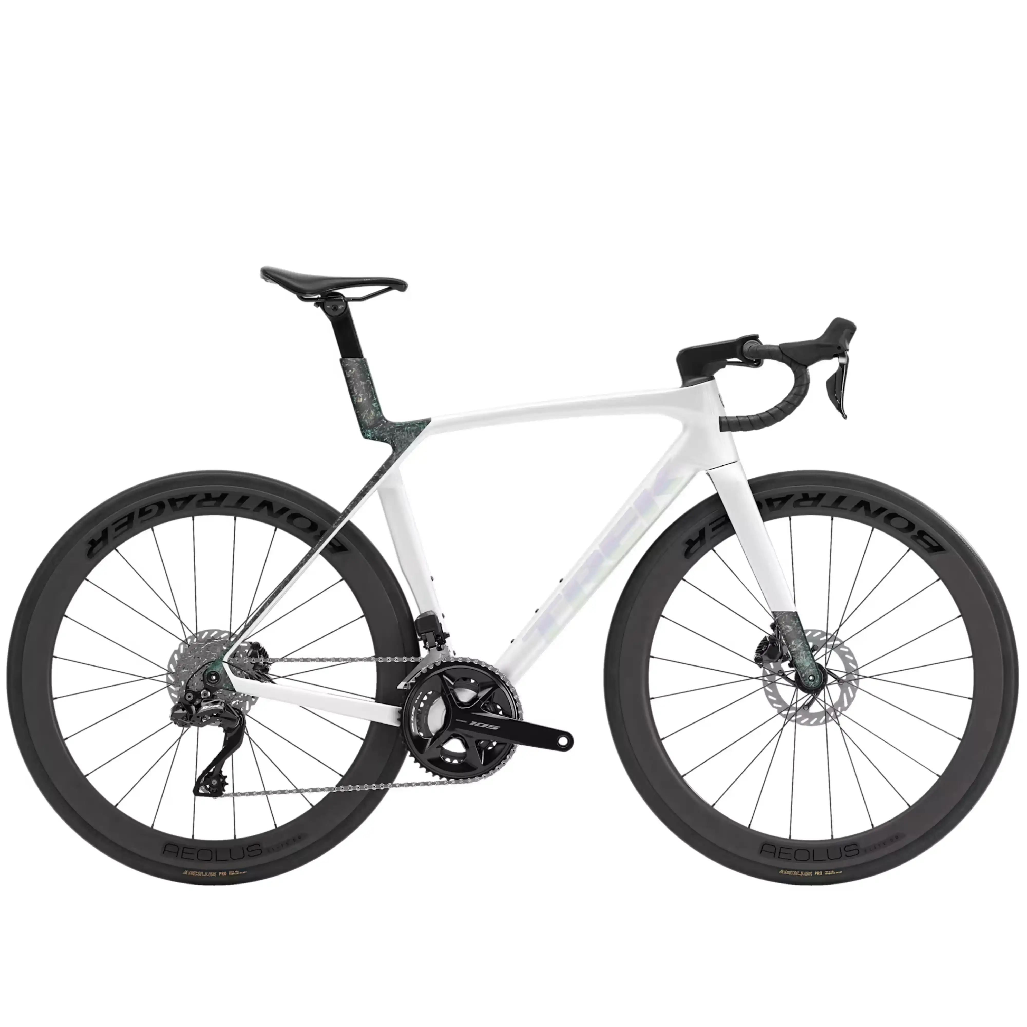 Rower wyposażono w karbonowe koła Bontrager Aeolus Elite, które łączą niską masę z aerodynamicznym profilem, poprawiając stabilność i efektywność jazdy. Opony o szerokości 28 mm zapewniają optymalny balans między prędkością a komfortem, a możliwość montażu szerszego ogumienia (do 32 mm) zwiększa uniwersalność roweru.
