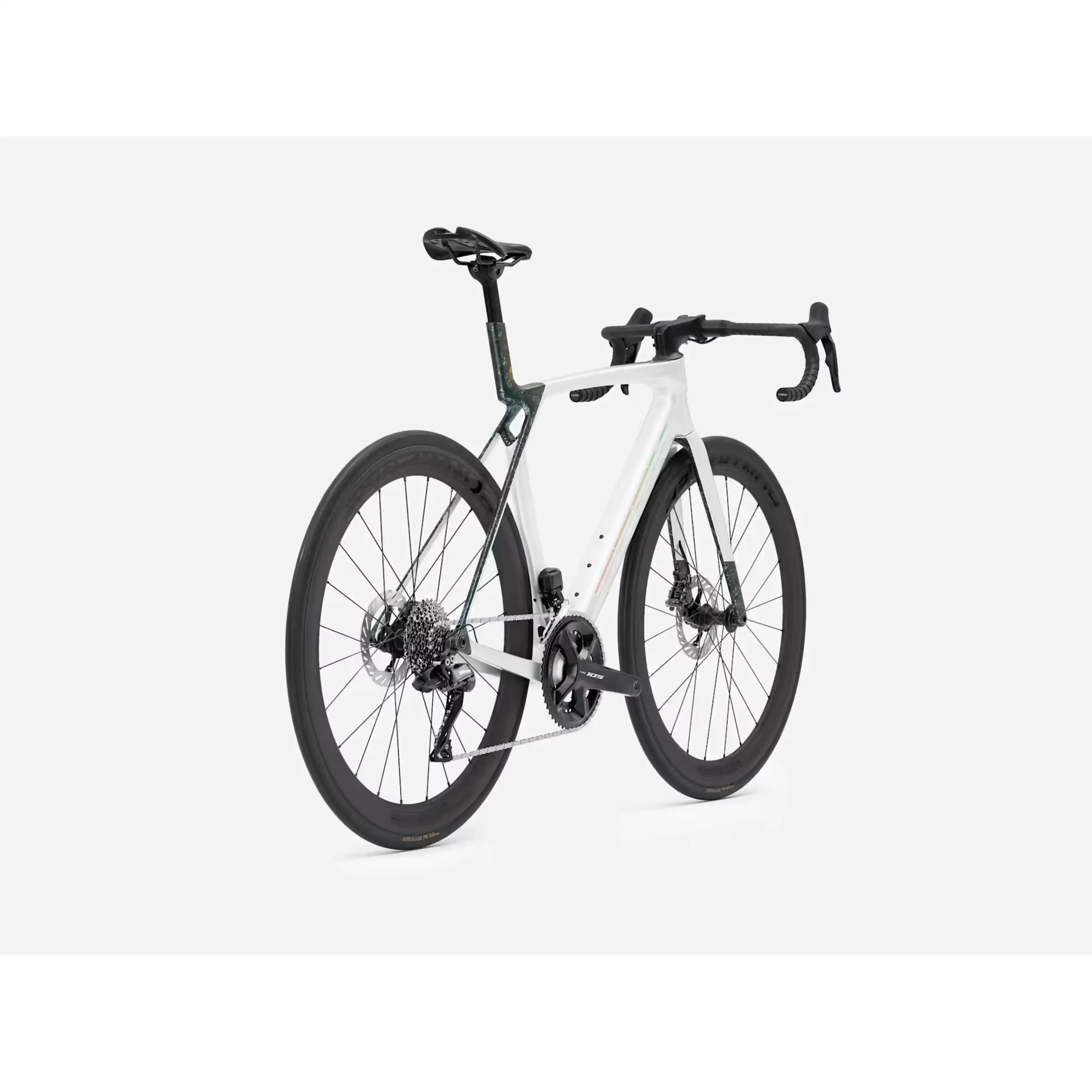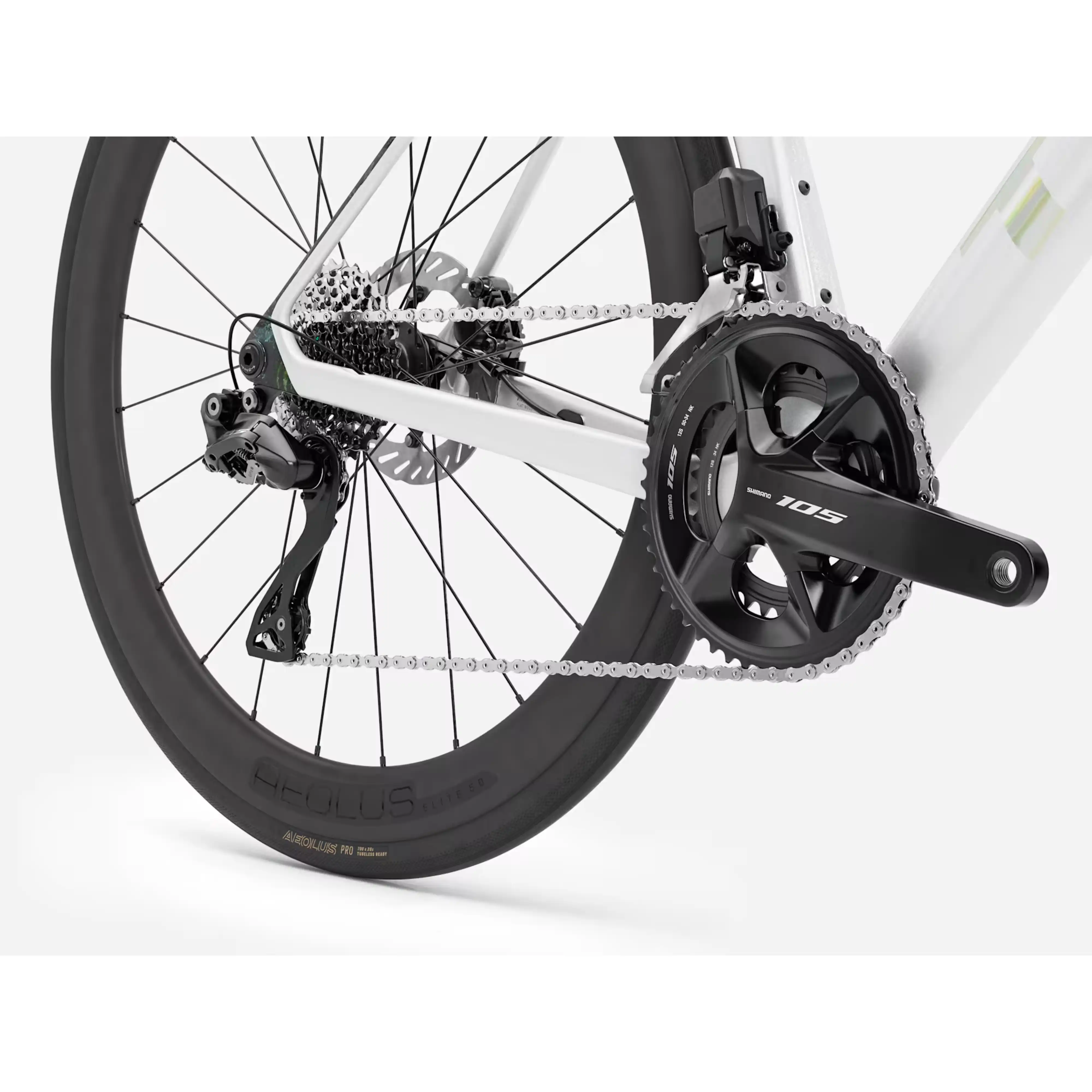 Za napęd odpowiada elektroniczna grupa Shimano 105 Di2 w konfiguracji 2x12, oferująca błyskawiczną, precyzyjną i niemal bezobsługową zmianę przełożeń. Szeroki zakres kasety 11-34 pozwala na efektywną jazdę zarówno na szybkich odcinkach, jak i podczas wymagających podjazdów.