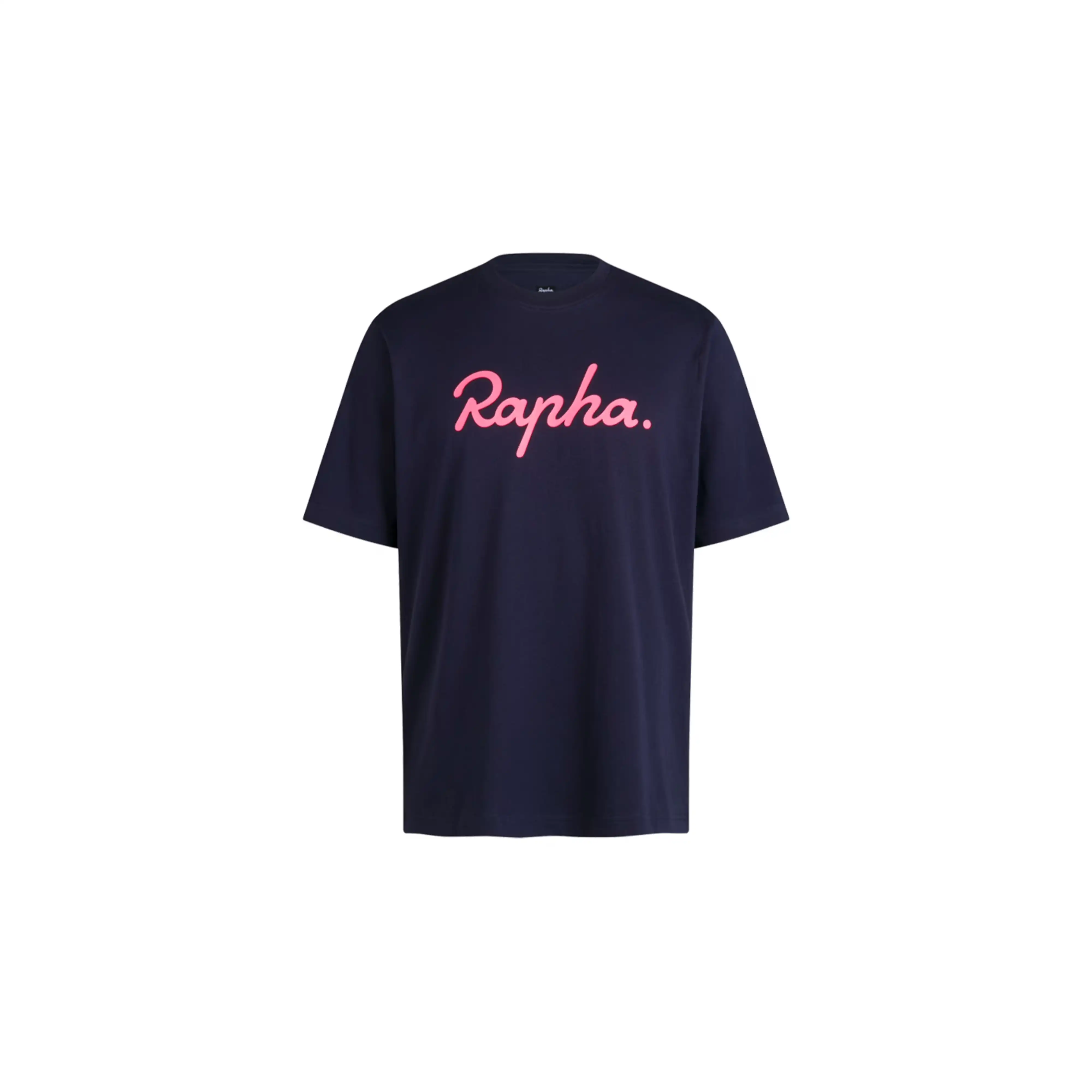 Nowy, gruby T-shirt Rapha ze 100% bawełny organicznej. Cudownie miękki i wygodny do noszenia na co dzień, z dużym, gumowym logo. Regularny krój.
