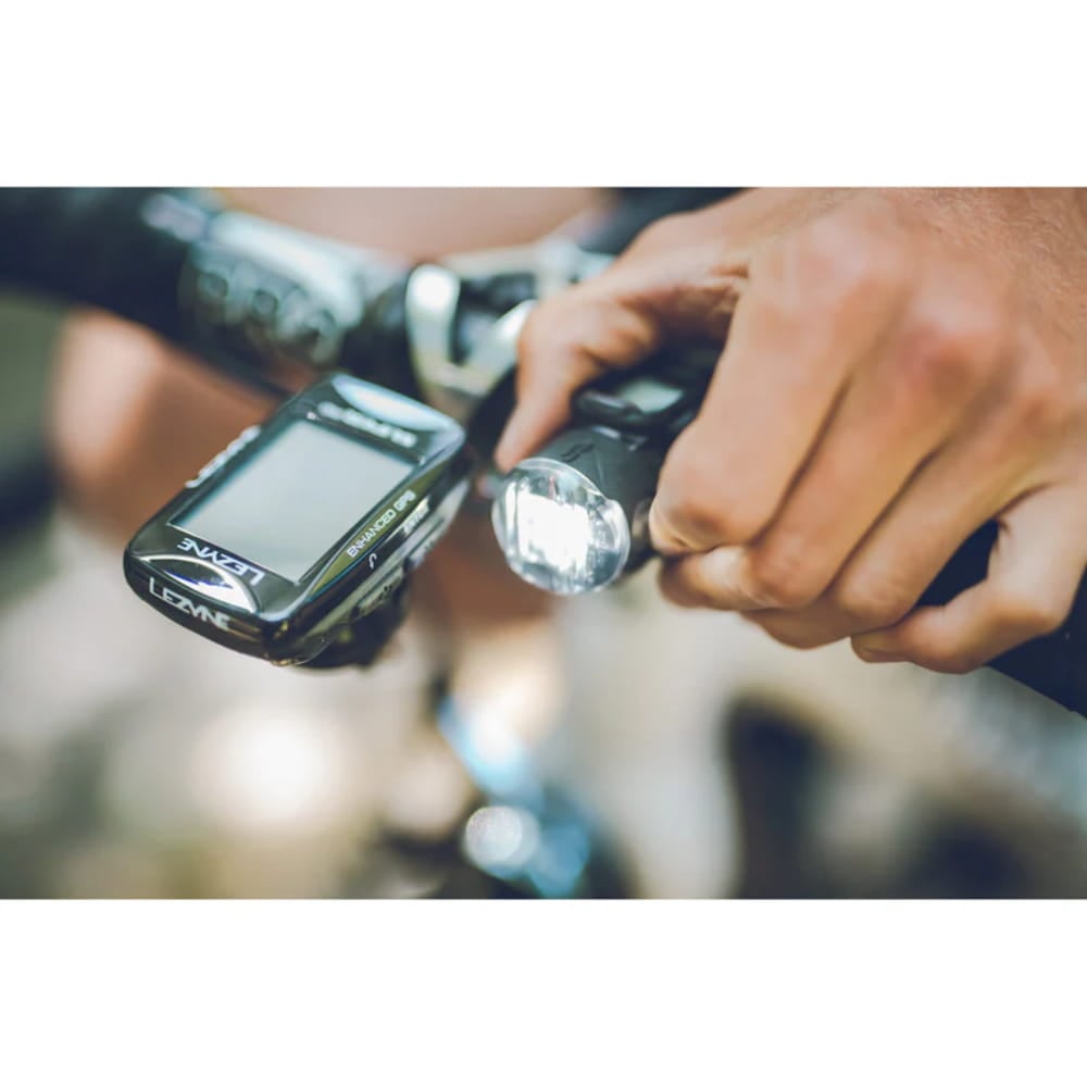 Uniwersalny gumowy pasek montażowy Femto szybko i bezpiecznie montuje się na różnych rozmiarach sztyc siodełka, a wodoodporna, gwintowana osłona Composite Matrix chroni port ładowania USB-C przed brudem i zanieczyszczeniami.